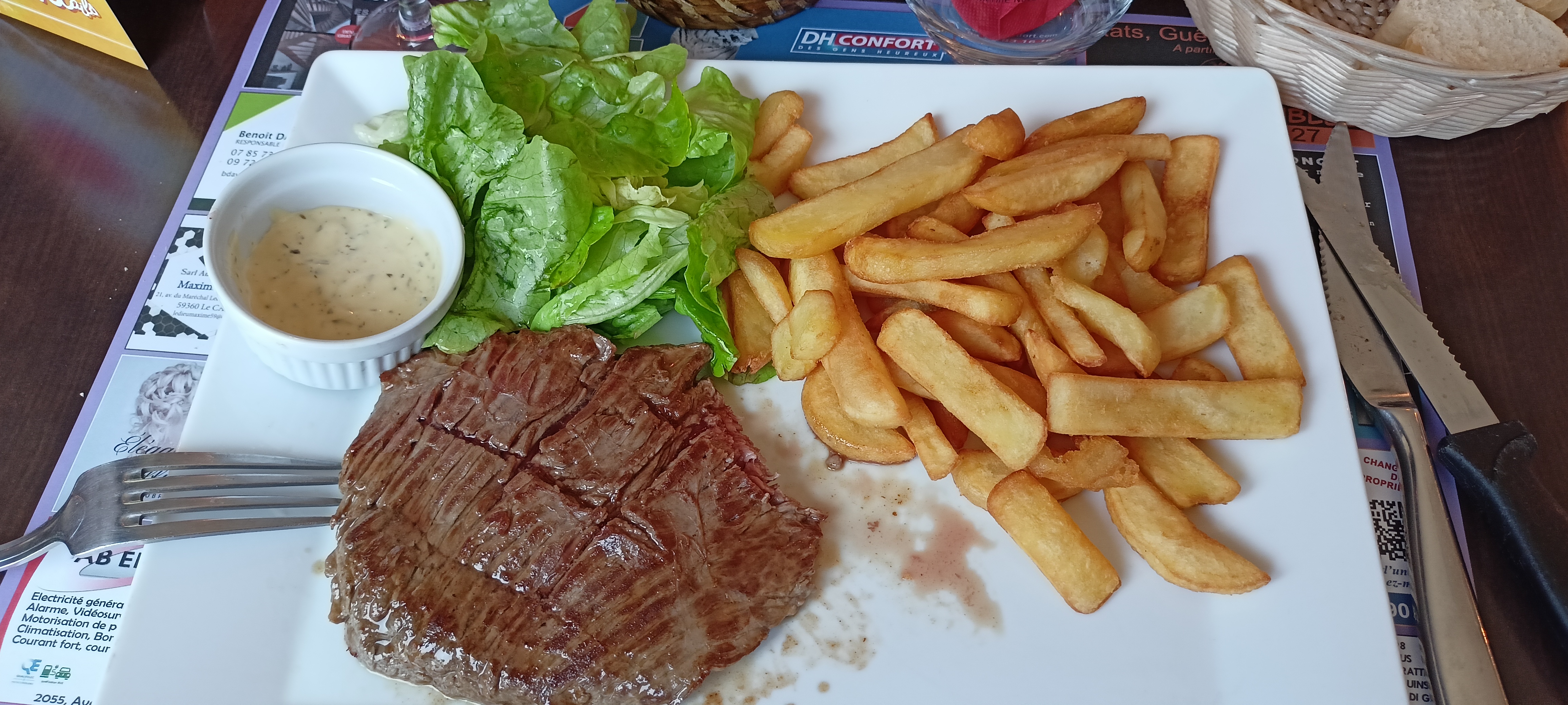 Expérience mitigée, pour une première dans ce restaurant...repas relativement simple (salade et tomates coupées grossièrement et crème aux maroilles trop liquide) mais les frites sont très bonnes . Les enfants ne sont pas les bienvenus...accueil expéditif.