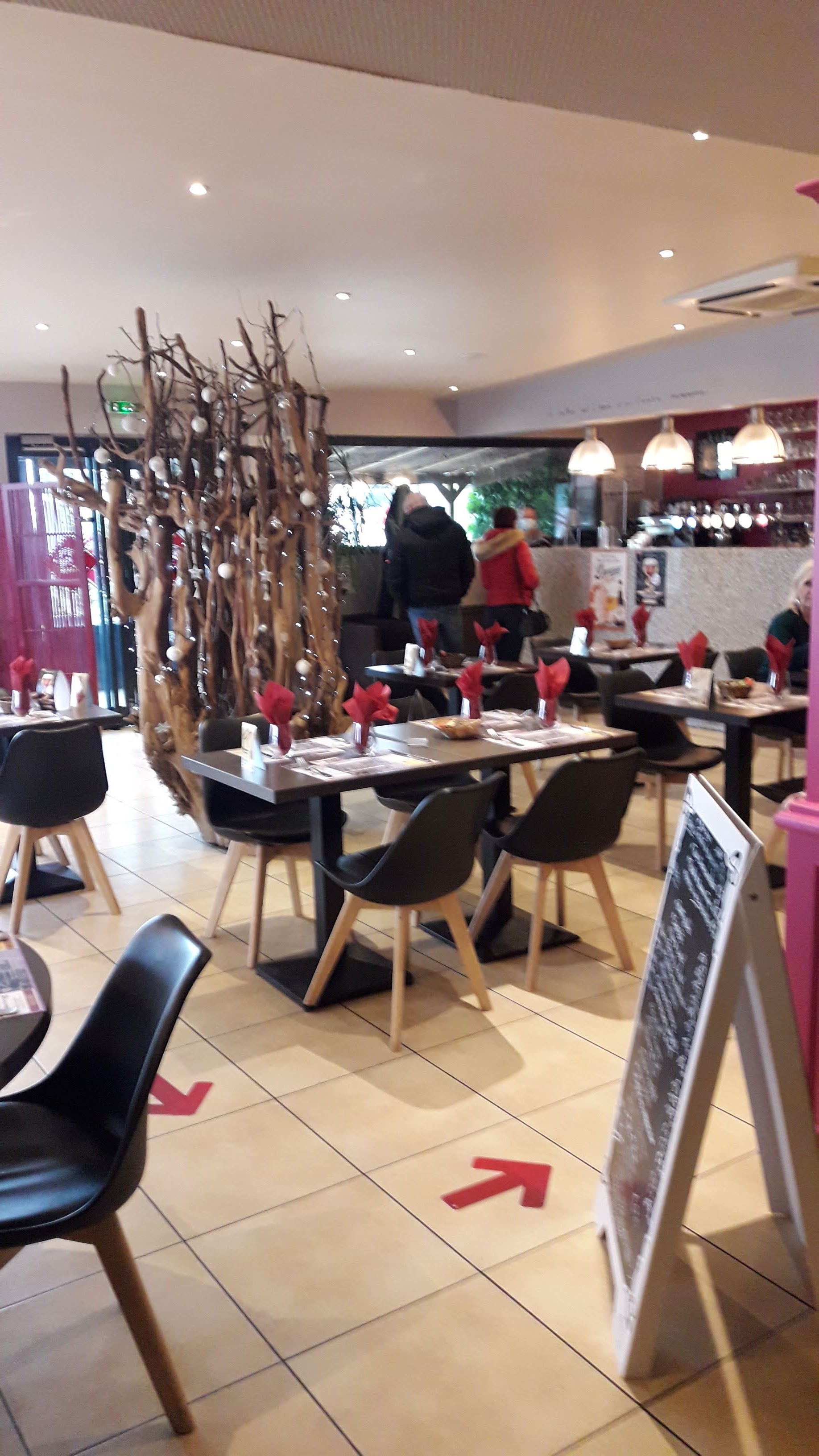 Lieu bien situé, grand parking, belle décoration intérieure, Dommage car pas beaucoup de choix à la carte et accueil moyen. Le plat était bon quand même malgré une présentation légère, la cuisinière est sérieuse charlotte blouse gants, protocole sanitaire respecter.