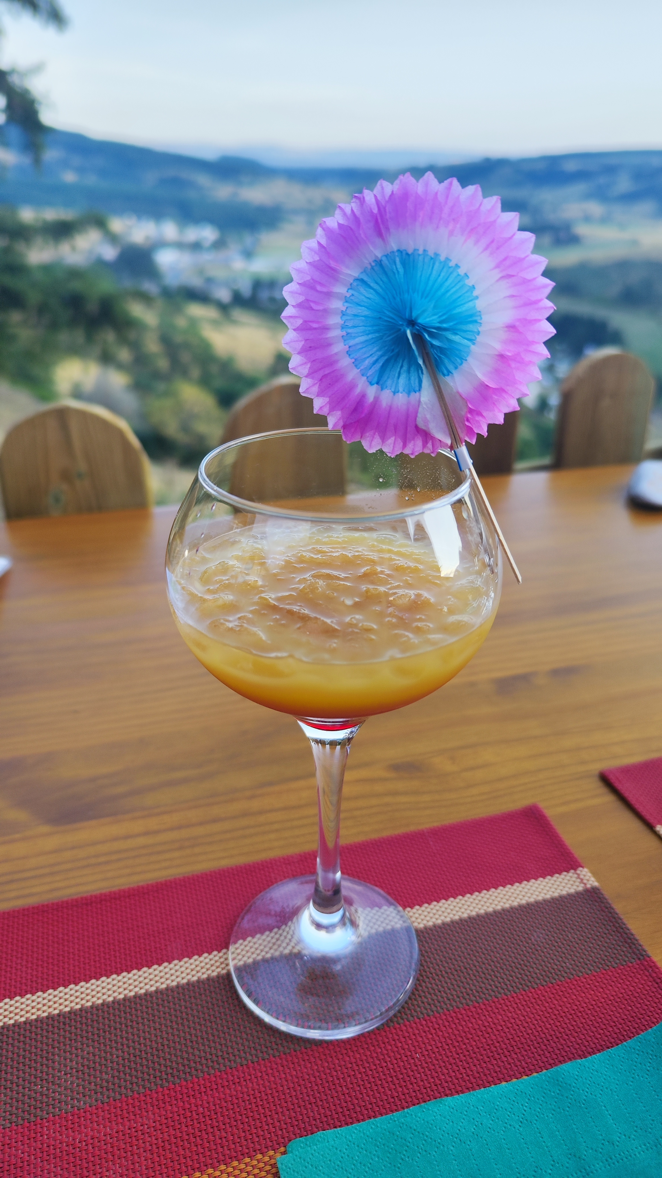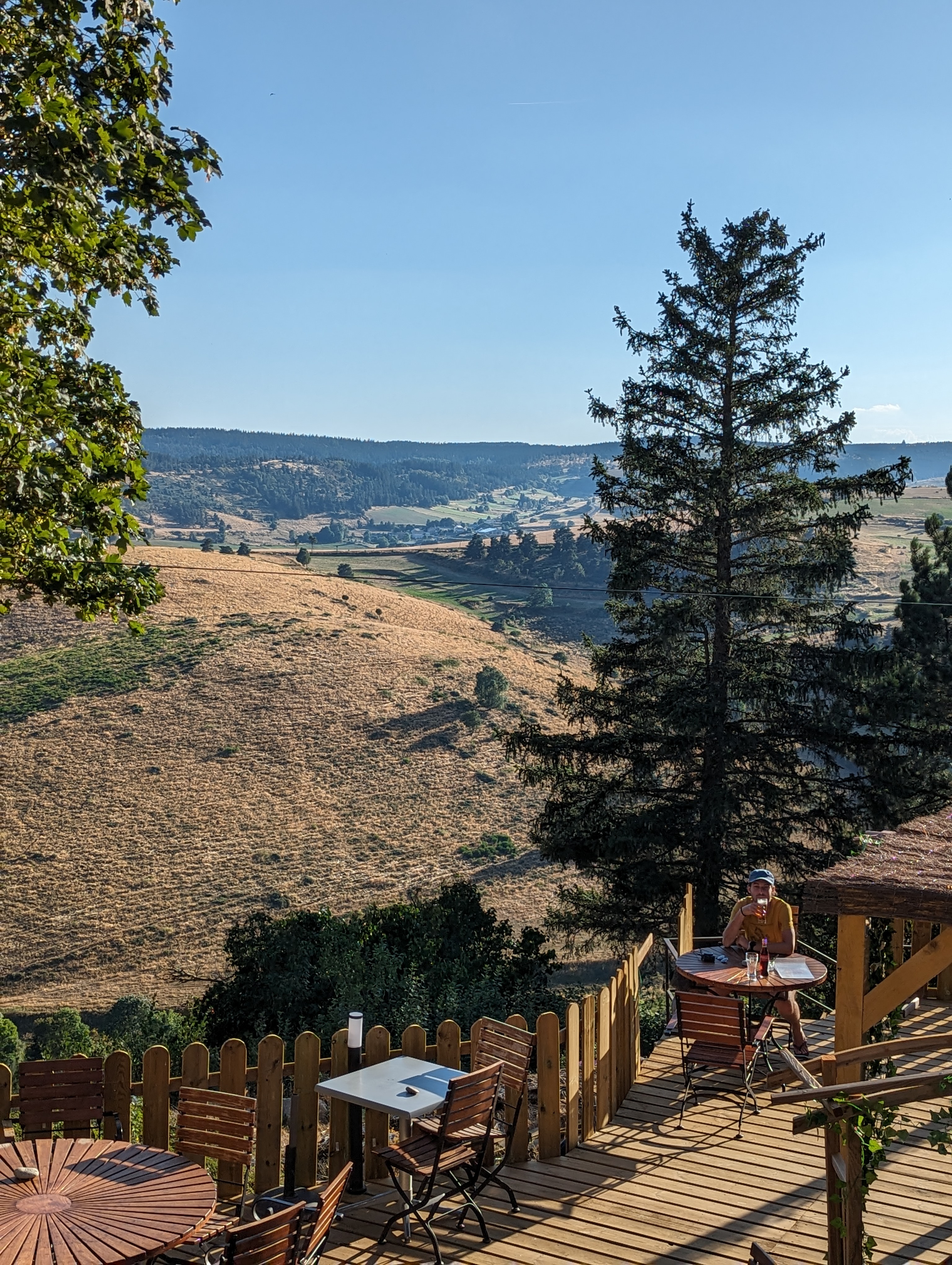 Accueillis avec le sourire de Manon, nous reviendrons avec nos amis. Collations prise en terrasse d'altitude très cosy dans une ambiance musicale intimiste et une vue imprenable sur une limonade au miel, un sorbet lavande myrtille et...la Margeride.