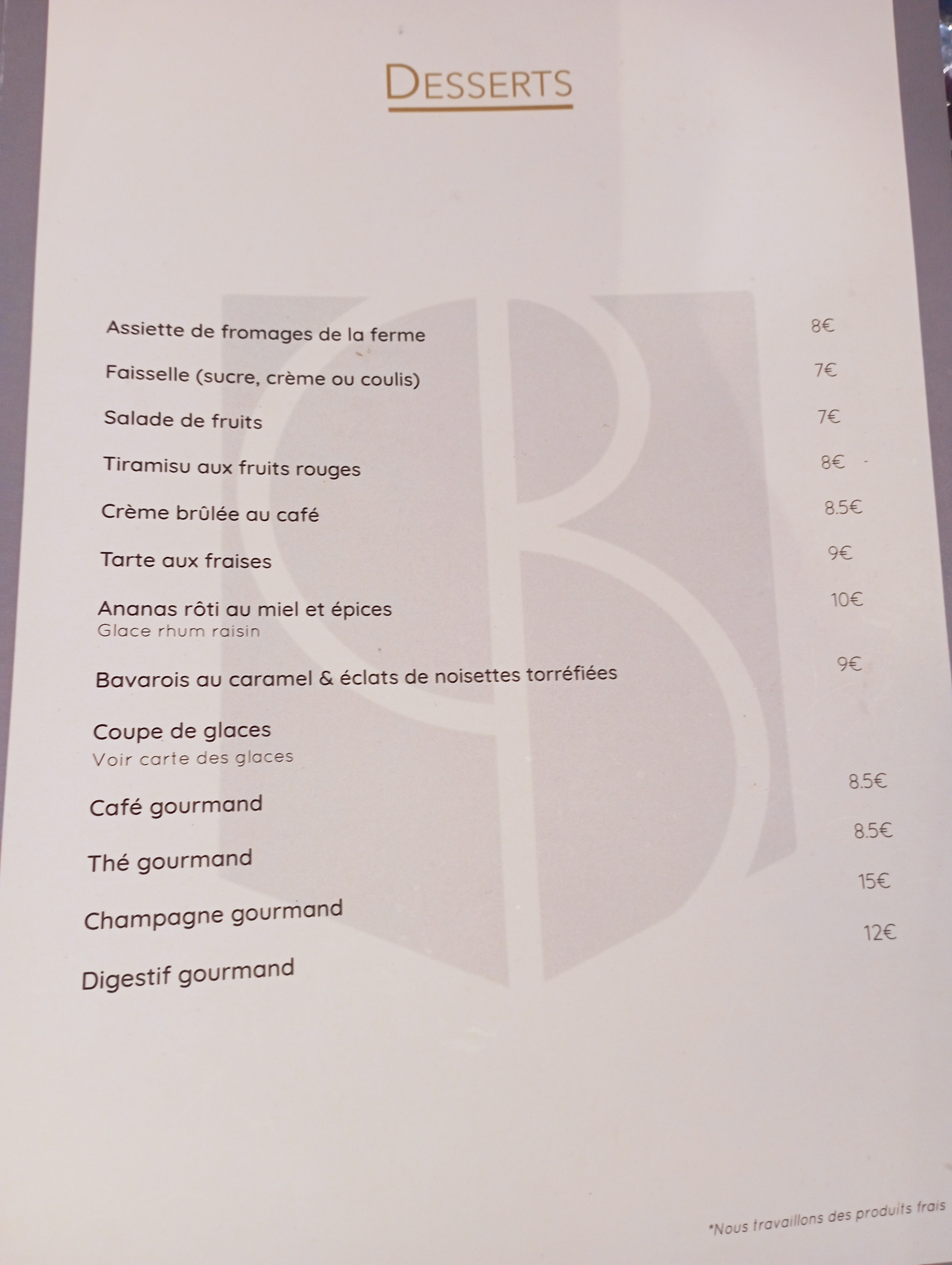 Très belle bâtisse avec un accueil des plus poli. Menu à la carte. Le vin en apéritif était très bon. Le bréchet persillé était une belle découverte. A recommander.