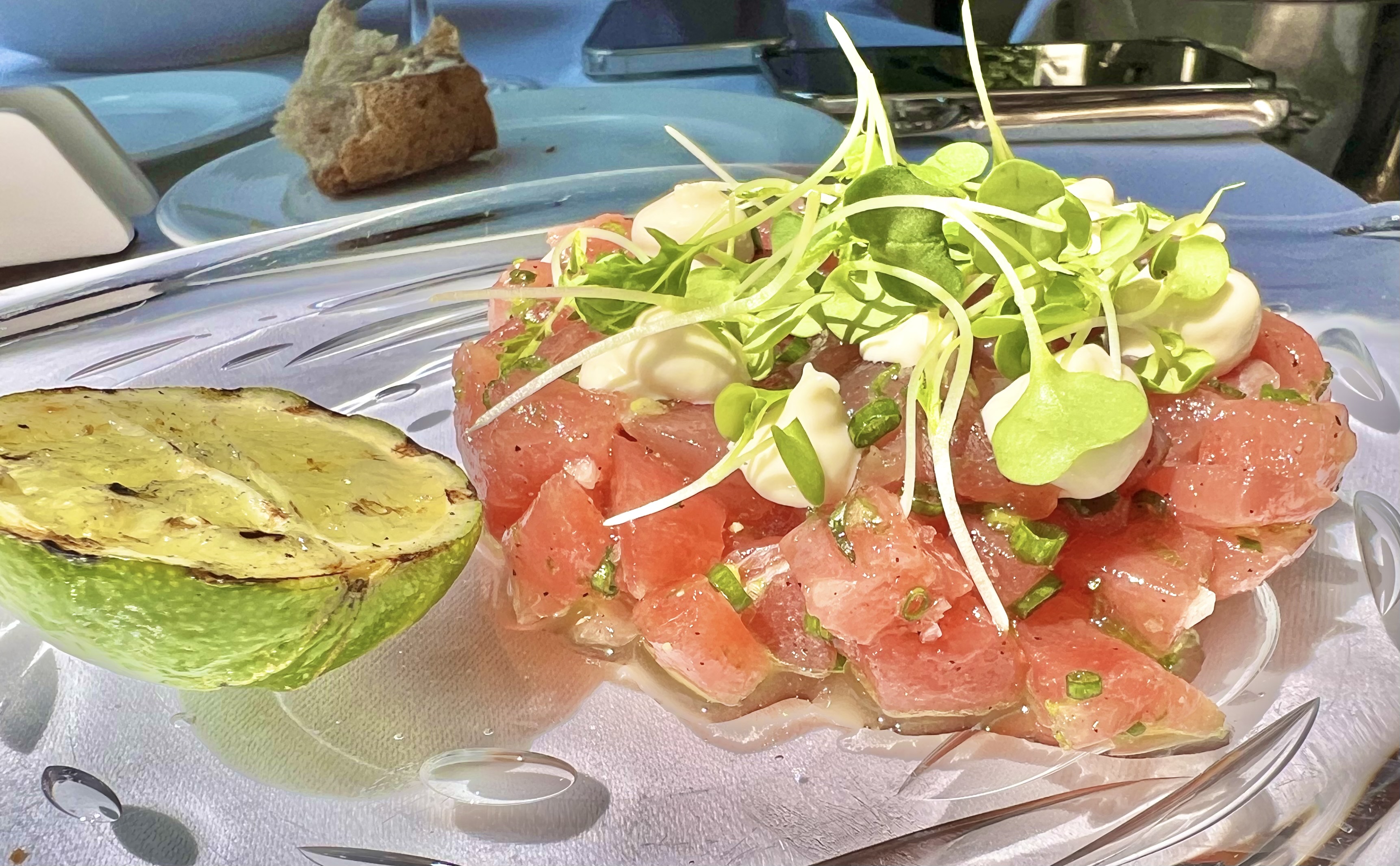 J ai commandé une lotte. J'ai eu deux petits bouts de poisson . J' ai cherché l accompagnement. Le plat était à peine tiède et ce pour 48€. (56€ eau incluse) J' ai payé la très jolie décoration.