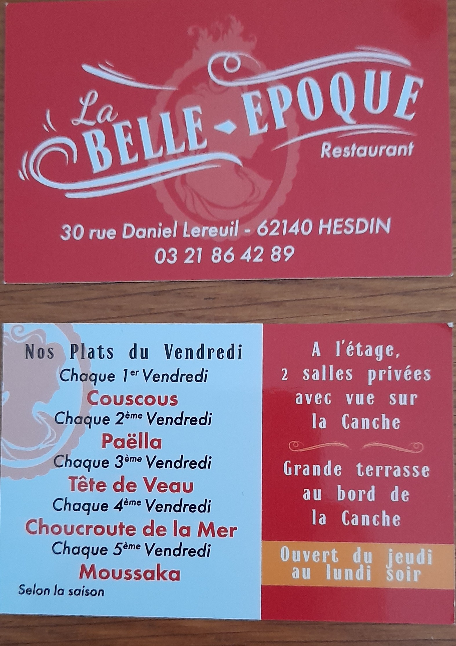 Toujours notre pause de midi lors de notre route vers la baie de Somme. Personnel et patron attentionnés à la clientèle. Chaque vendredi une spécialité à l'ardoise. Une belle petite ville traversée par la canche. Déco belle époque comme le nom l'indique. Mieux vaut réserver.