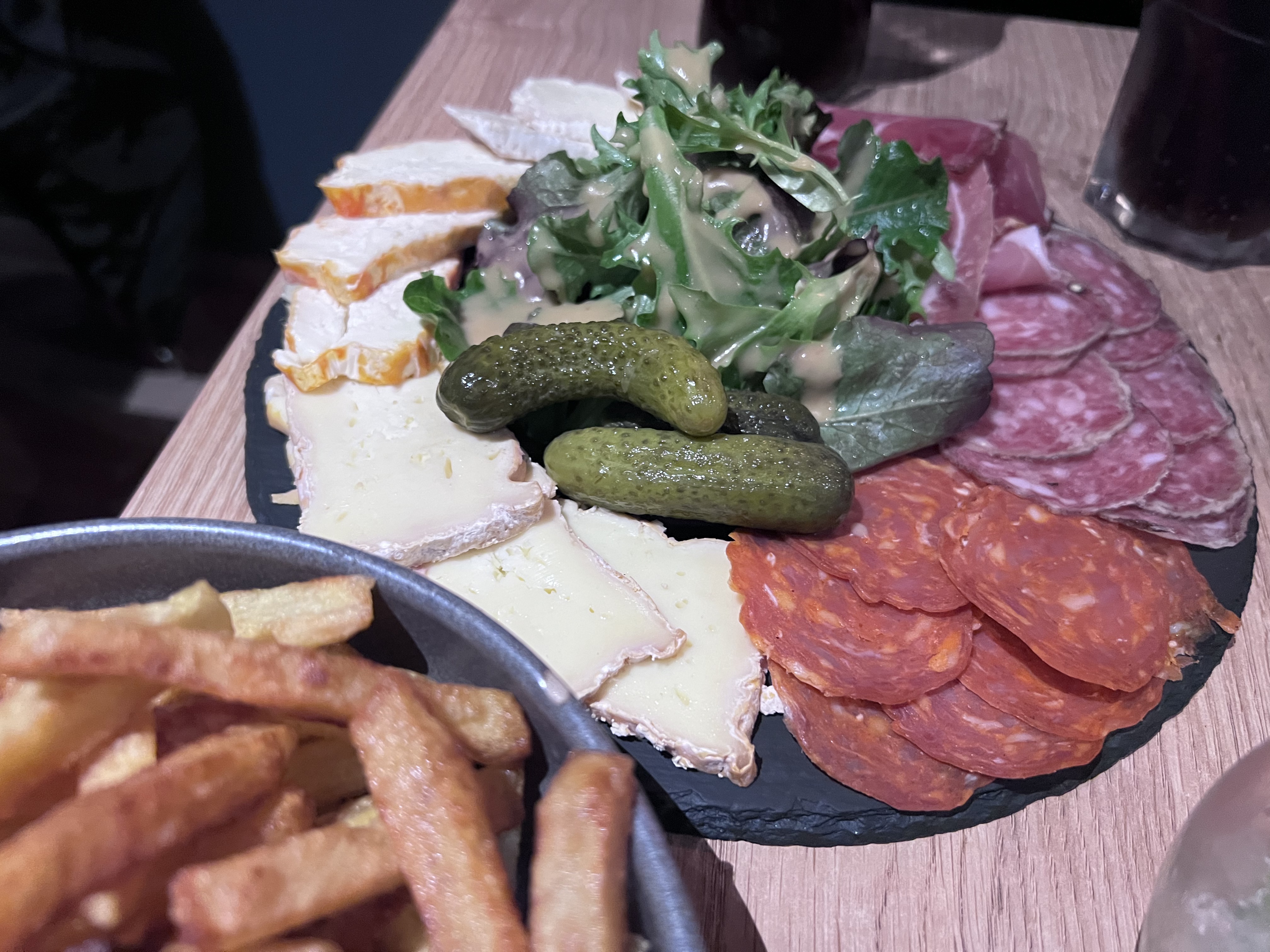 Ambiance sympas Cadre sympas Planche mixte a 15 euros pour trois rondelles de saucisson trois rondelles de chorizo et trois bouts de fromage c'est abusé (la serveuse a presque honte de servir ca )