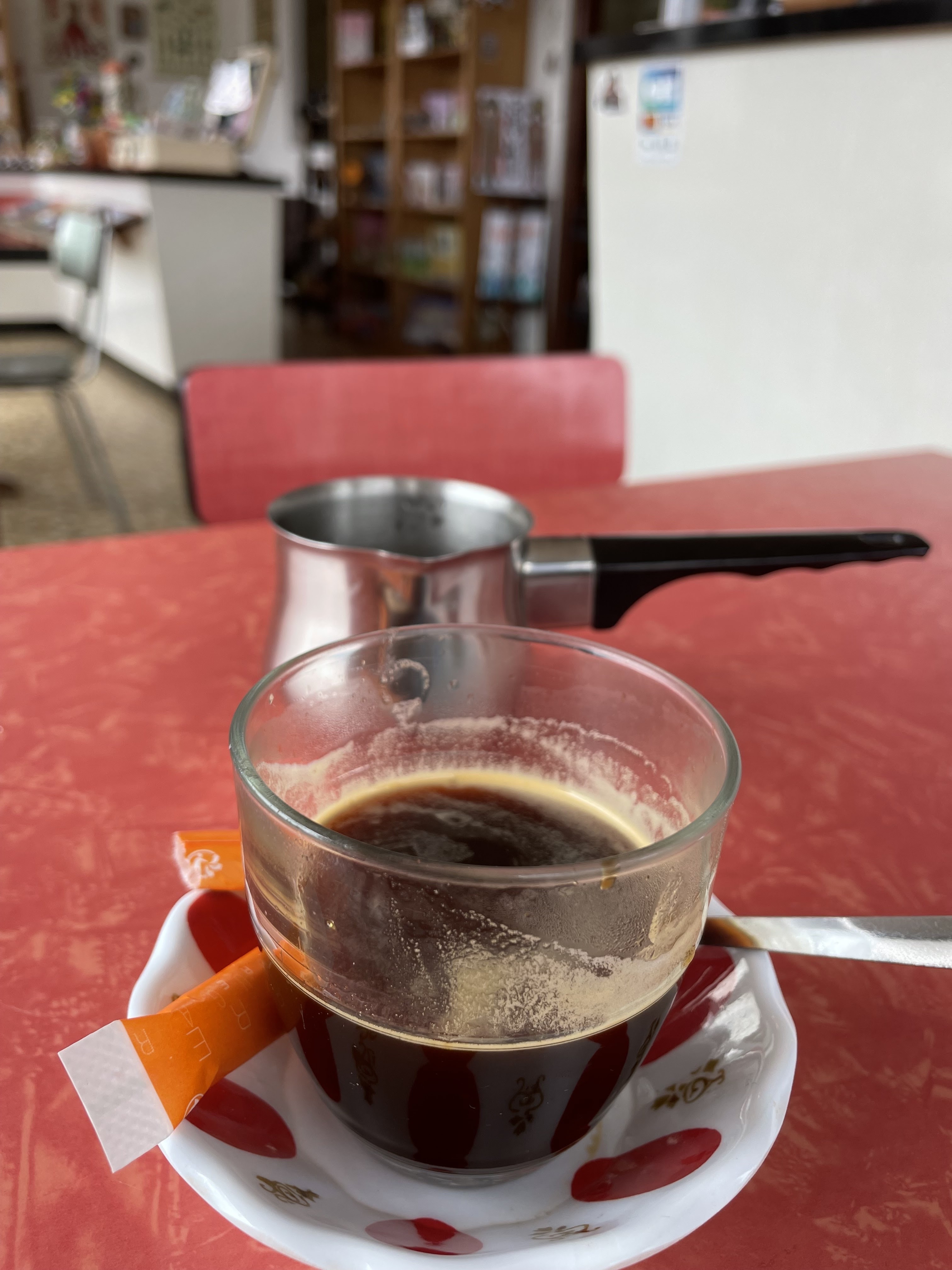 Posté le 04/08/2023 à 11:59" Oh mon Dieu, quel petit endroit luxuriant 😍 complètement caché. Égoïstement, je préfère garder ce bel endroit pour moi et pour les locaux donc je suis presque réticent à poster un avis, mais les propriétaires le méritent vraiment alors c'est parti….. (je ne poste pas d'avis très souvent et je ne laissez que 5 étoiles ✨ ou 1 étoile moins 10), ce qui devrait suffire en soi. Cet endroit est le deuxième chez-soi du véritable hipster humble. Le menu est simple, la nourriture proposée semble locale et fraîchement préparée mais je n'ai eu que le temps de prendre quelques cafés. Mais oh mon Dieu, savent-ils comment faire un bon expresso. L’un des meilleurs que j’ai jamais goûté – et Dieu sait que j’en ai goûté de nombreuses et nombreuses régions du monde. "