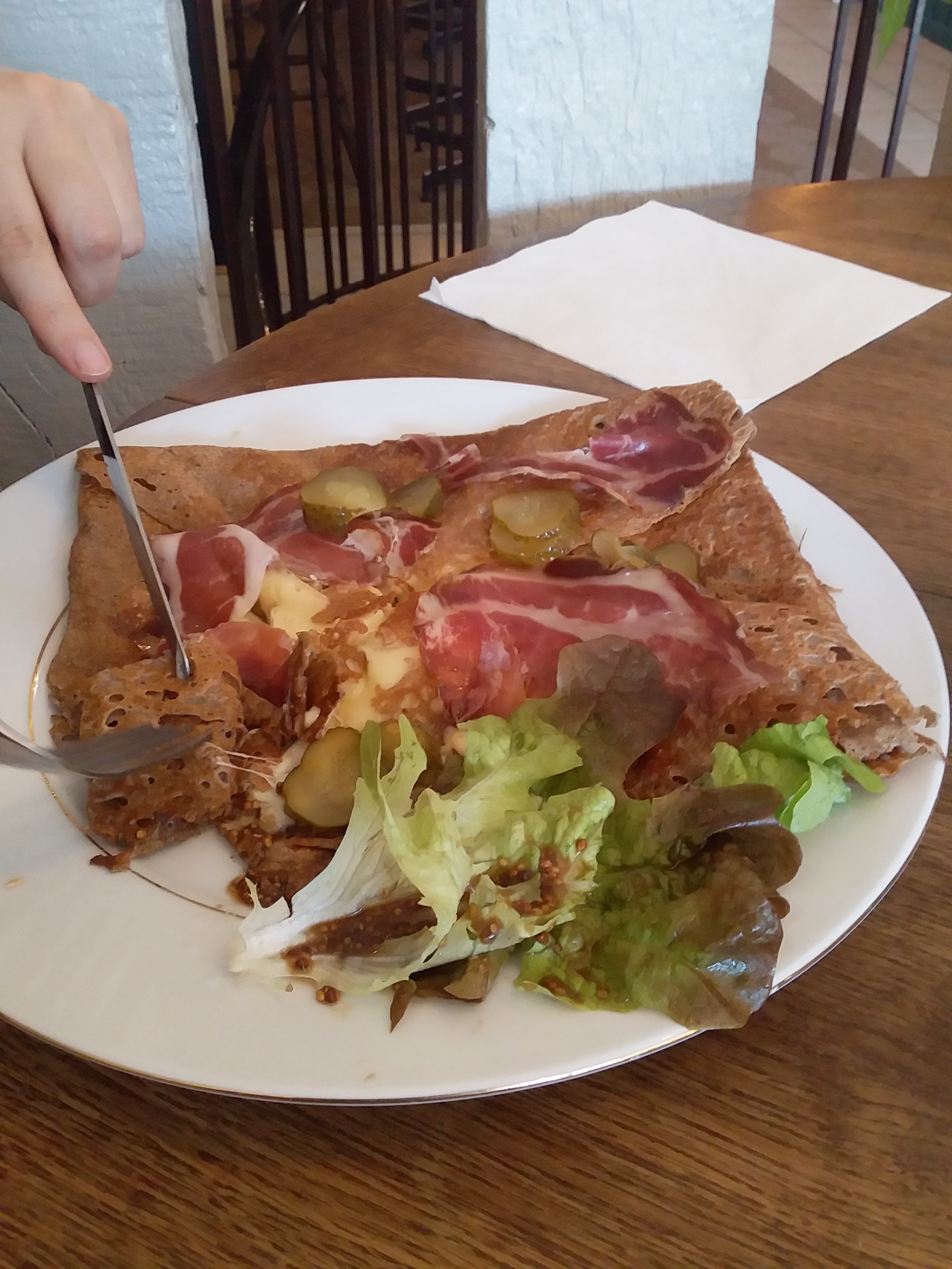 Très belle découverte. Galettes succulentes et généreuses. Dans un environnement agréable face aux remparts de la ville et tout proche du château. Je recommande et nous y reviendrons avec plaisir.