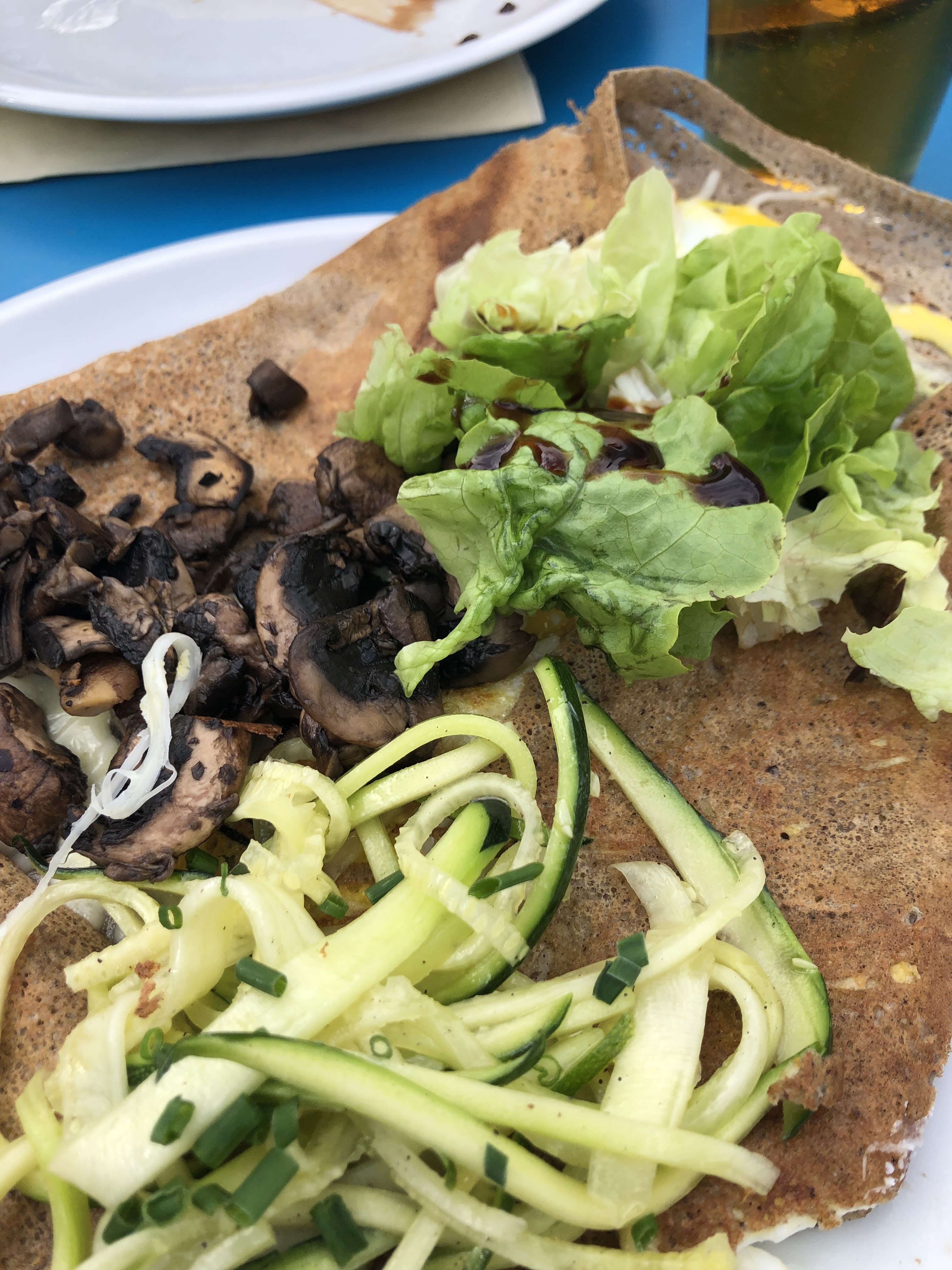 Uniquement des galette et des crêpes. Pas de possibilité de salade. Pour certaines galettes c'est a dire la majorité de la carte, trop de complexité dans les compositions, trop d'ingrédients dont on ne retrouve pas le goût. Beaucoup de gras pour faire cuire ces Galettes sarrasin. (J'en ai mangé de meilleures). Expresso : mauvais. Service avec le sourire et terrasse très agréable.