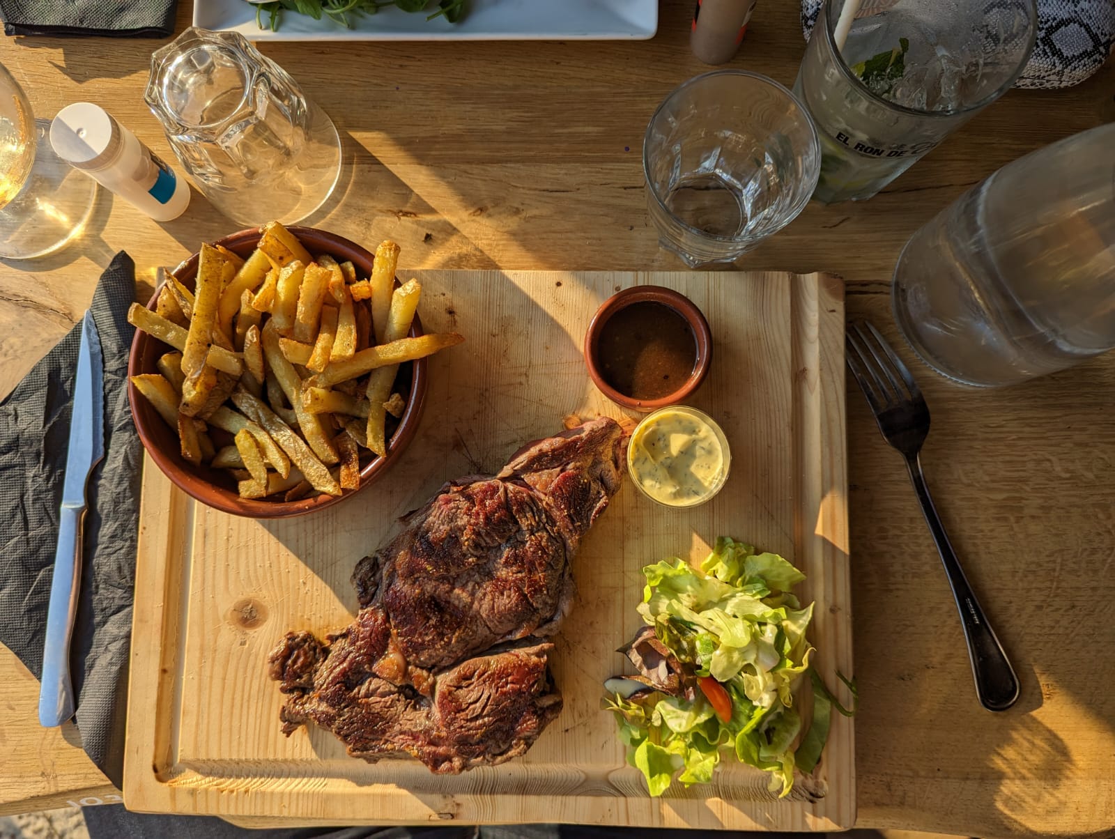 Posté le 19/07/2024 à 18:15"Le décor est magique, le service top, acceuil souriant. Chien bienvenu avec gamelle d'eau ! Assiettes généreuses, viandes de qualité extra et cuissons parfaites, frites excellentes. Fond musical un peu fort, la playliste gagnerait a être plus soft, surtout quand les tables voisines sont bruyantes... Néanmoins jolie découverte, nous reviendrons."