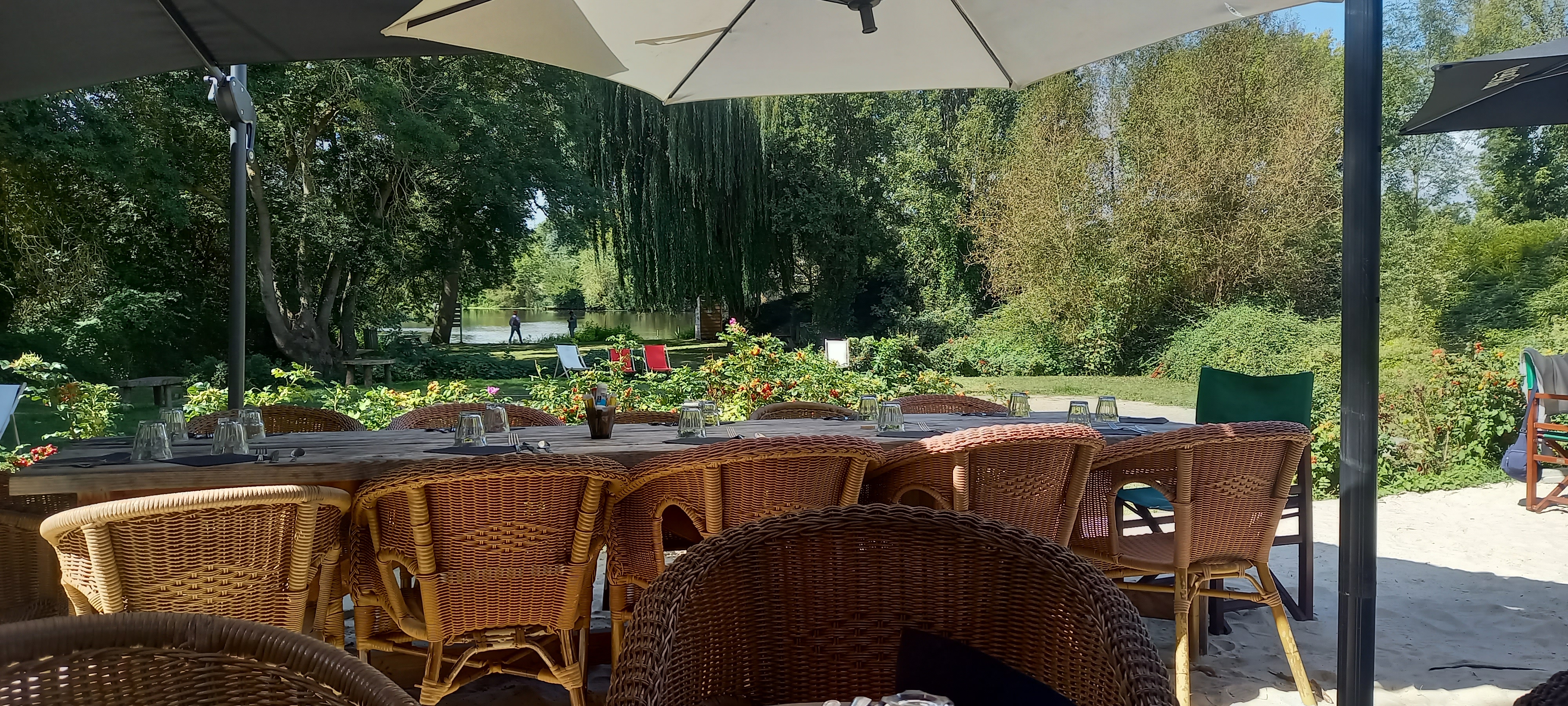 Posté le 15/08/2024 à 08:43"Une guinguette qui mérite le détour. La nourriture est simple mais copieuse et délicieuse (frites et sauces maison), le cadre, l'ambiance et le service sont très agréables... un vrai plaisir, un moment de détente estival idéal et cet endroit est ouvert toute l'année !! Soupe Angevine en apéritif avec planche de fromages et charcuterie, pavé de Sandre au beurre blanc (un délice) et glaces excellentes pour finir. Grandes tables en bois et terrasse de sable, cours d'eau très proche, lampions multicolores et une chanteuse pour animer la soirée. Tout était PARFAIT. Si l'occasion m'est donnée, je reviendrai avec beaucoup de plaisir. En plus, les prix sont corrects. N'hésitez pas."