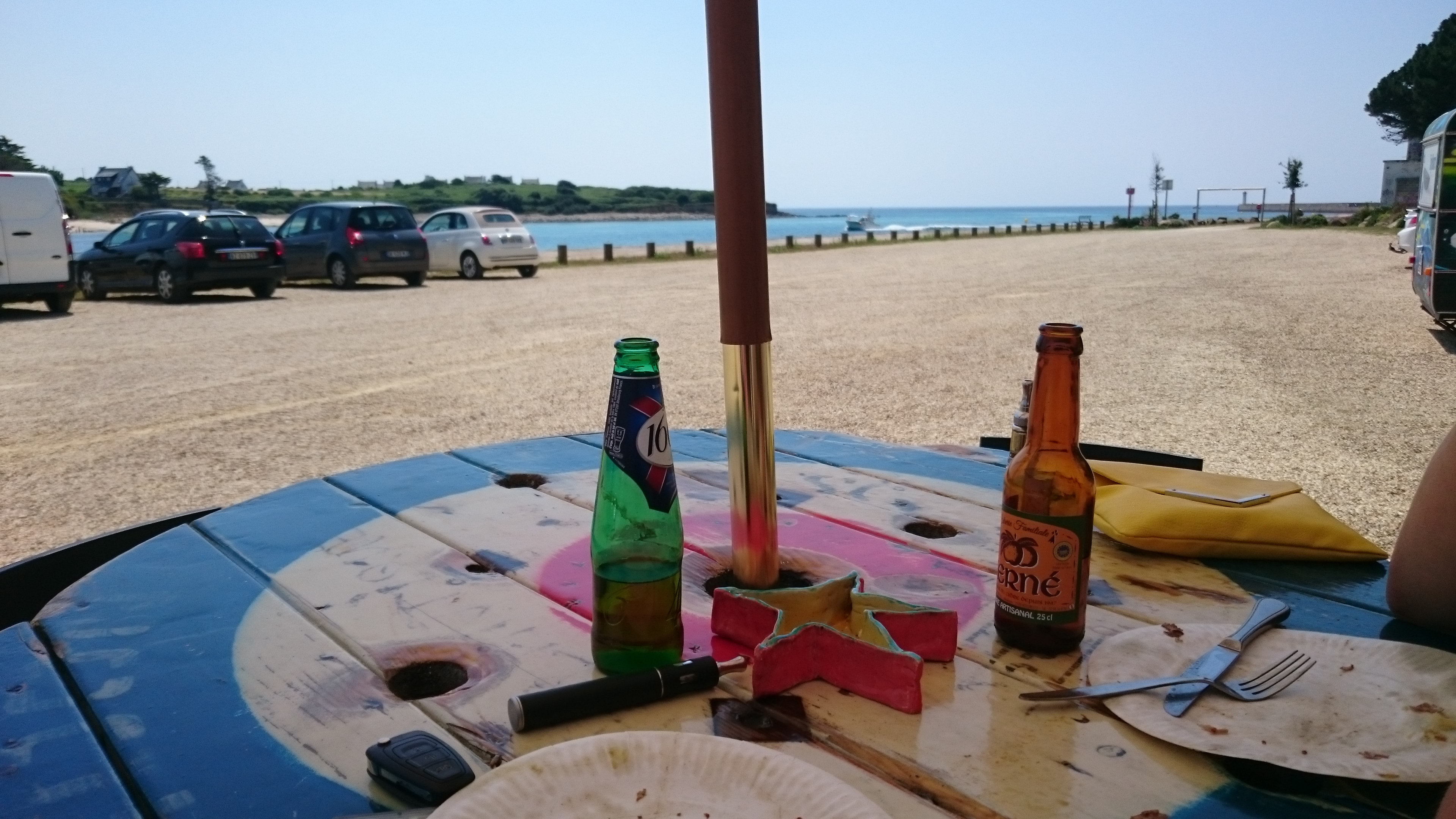 Caravane bleue les pieds dans l’eau au bord de la petite plage des Capucins, son sable fin. Du choix dans les crêpes et galettes… sans oublier le jus de pomme et cidre de Cornouaille - Kerné. Superbe emplacement à l’esprit guinguette à Audierne !