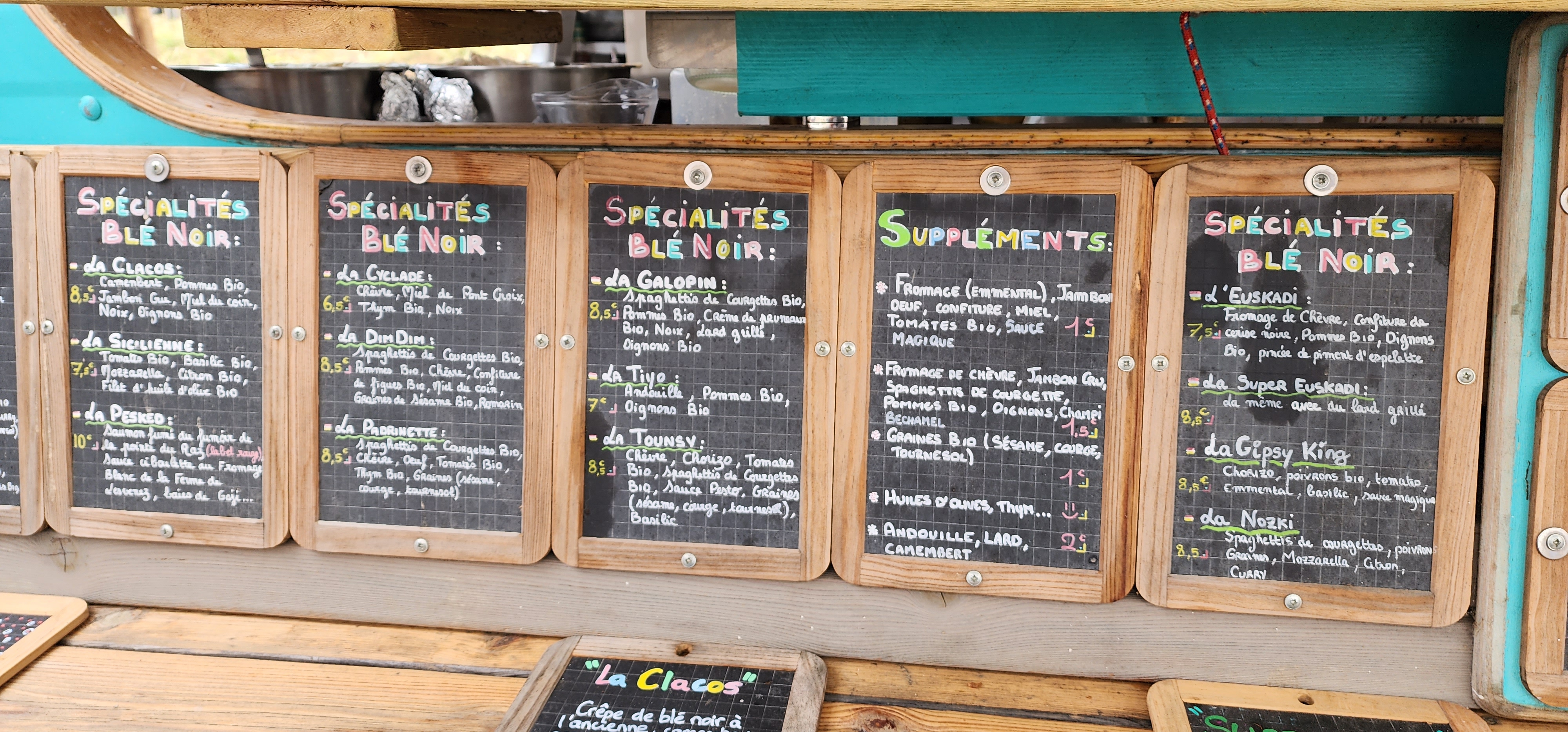 Le sympathique accueil, la façon d'organiser le service et évidemment le lieu, l'emplacement. Et l qualité des crêpes.