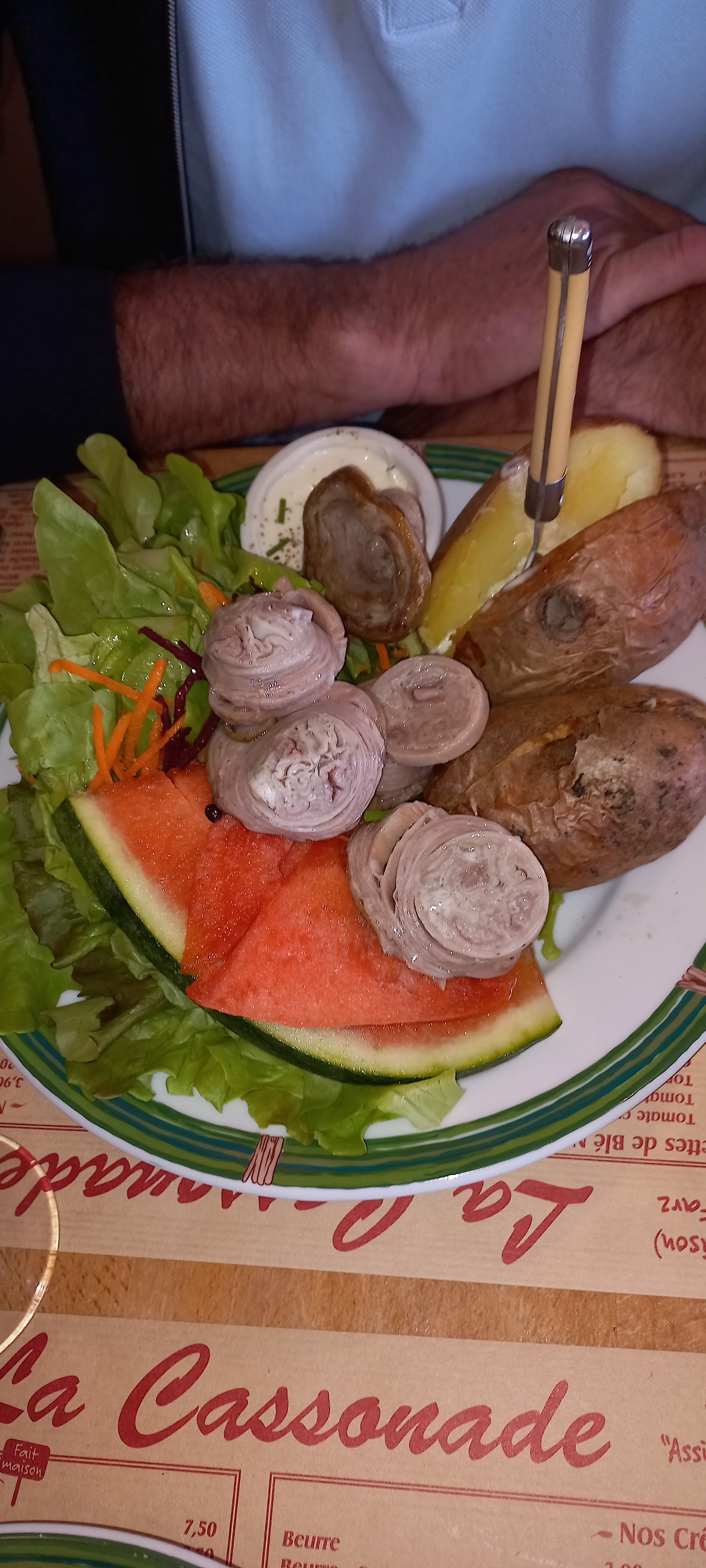Posté le 01/08/2024 à 16:57"Un seul mot attrape touriste.remplissage de l’assiette avec un maximum de salade,payer aussi chère pour 2 patate et 3 rondelle d’andouille je ne recommande pas"