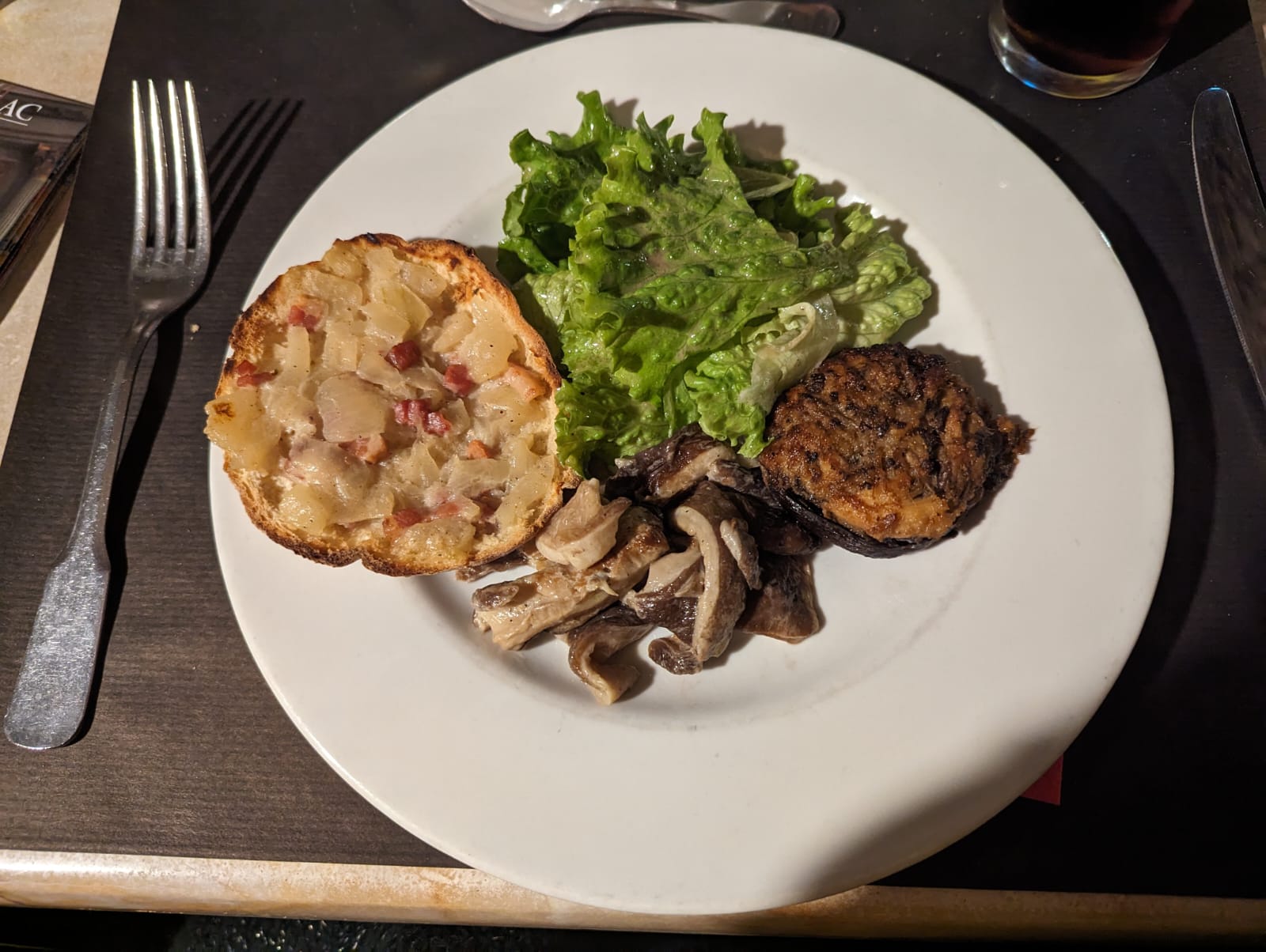 Manque de variété dans les menus, les condiments sont seulement au nombre de trois (beurre, rillette et champignons). Malheureusement il y avait des petits cailloux dans ma fricassée de champignons.