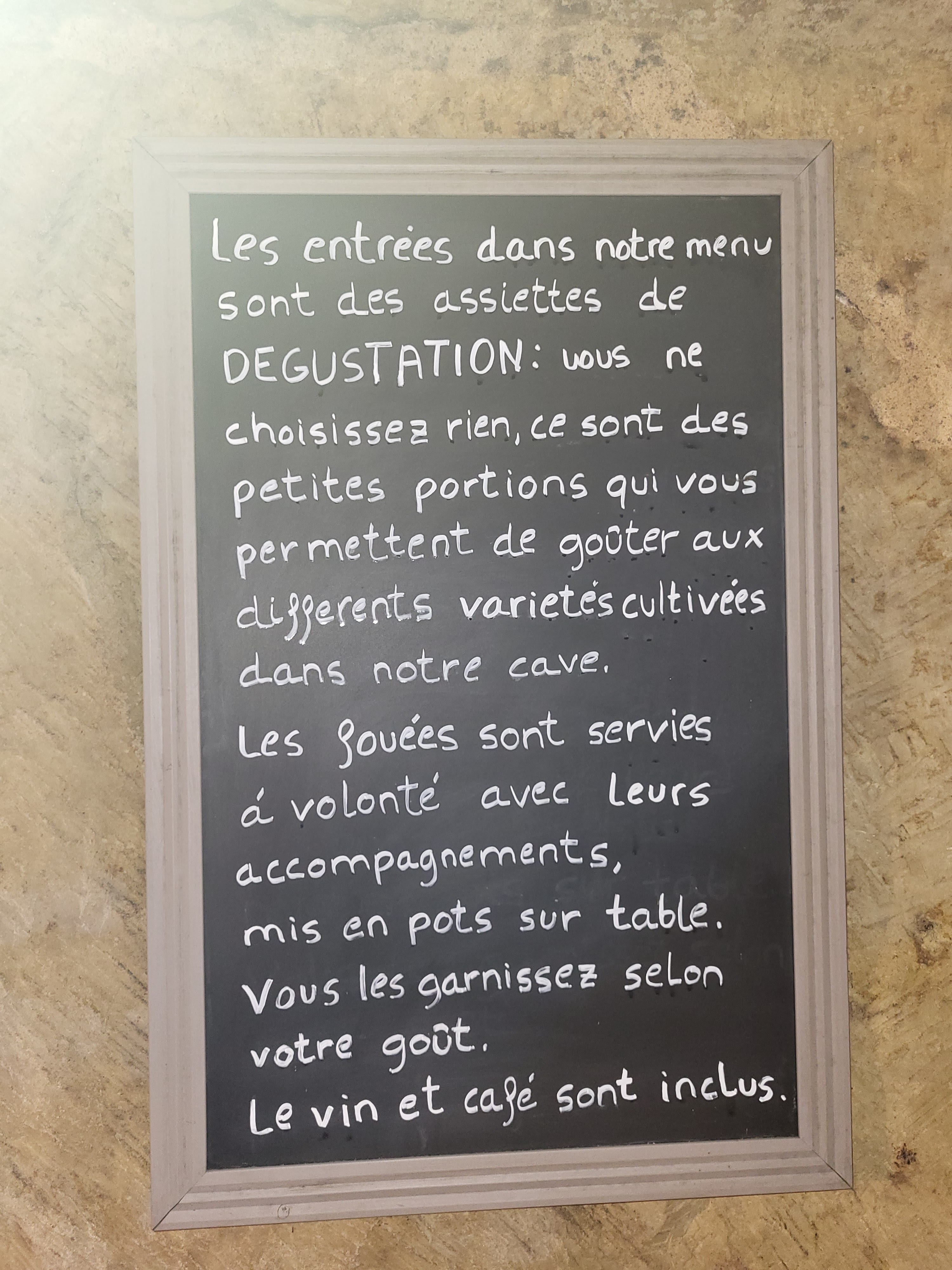 Bon accueil. Bonnes formules dégustation produits du terroir. Bon rapport qualité/prix. Un p'tit coucou particulier à Maria la serveuse , toujours souriante et très commerçante Je recommande .