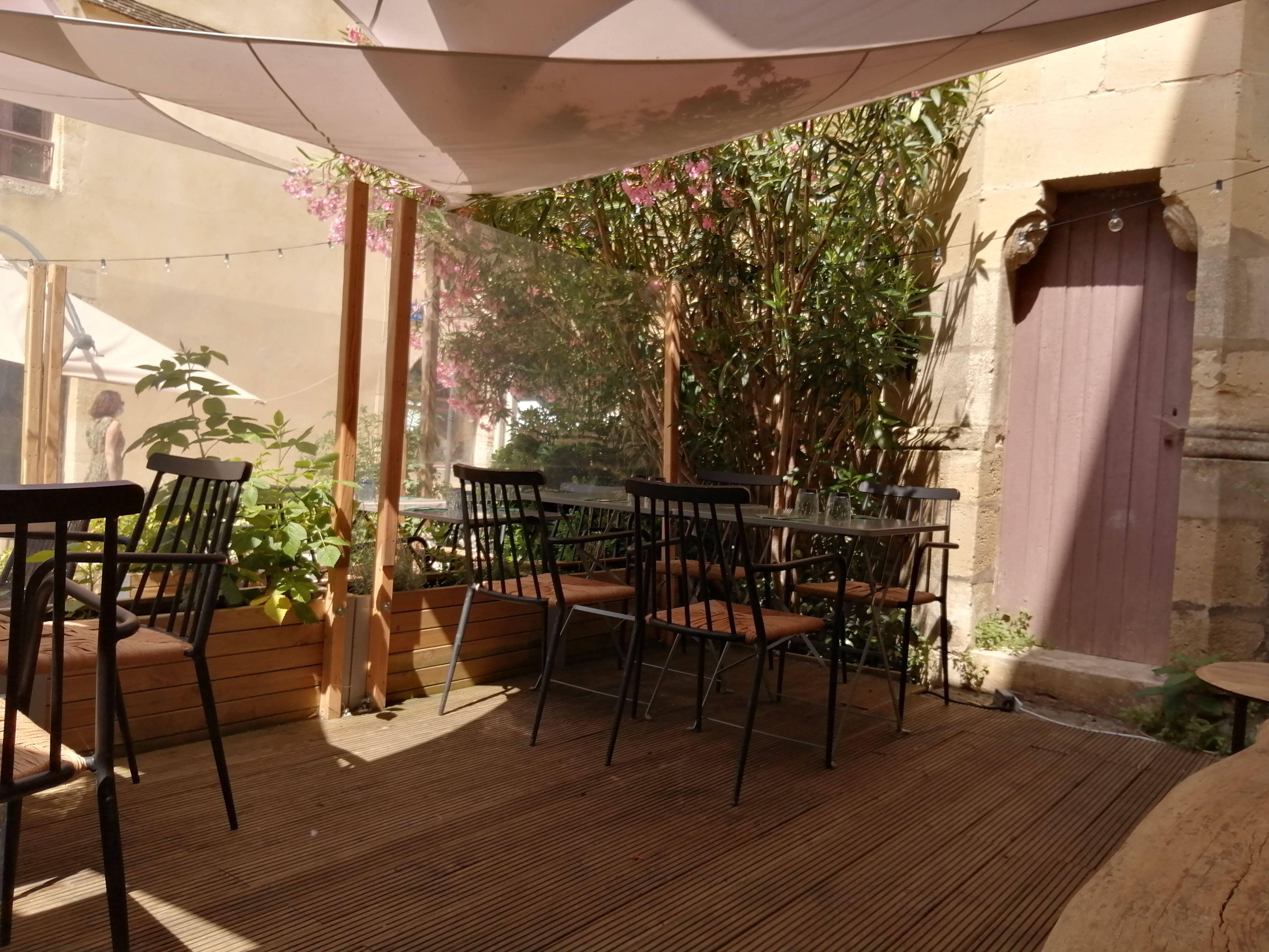 Posté le 31/08/2019 à 08:50"Un très bon moment ! J'ai eu l'occasion d'y déjeuner un jour de marché. La terrasse est très jolie et ombragée. J'ai opté pour une salade végétarienne très goûteuse et la portion était parfaitement adaptée ! Vous pouvez également choisir le vin qui vous plaît dans la boutique en payant un droit de bouchon très raisonnable 😊. J'y retournerai sans hésiter !"