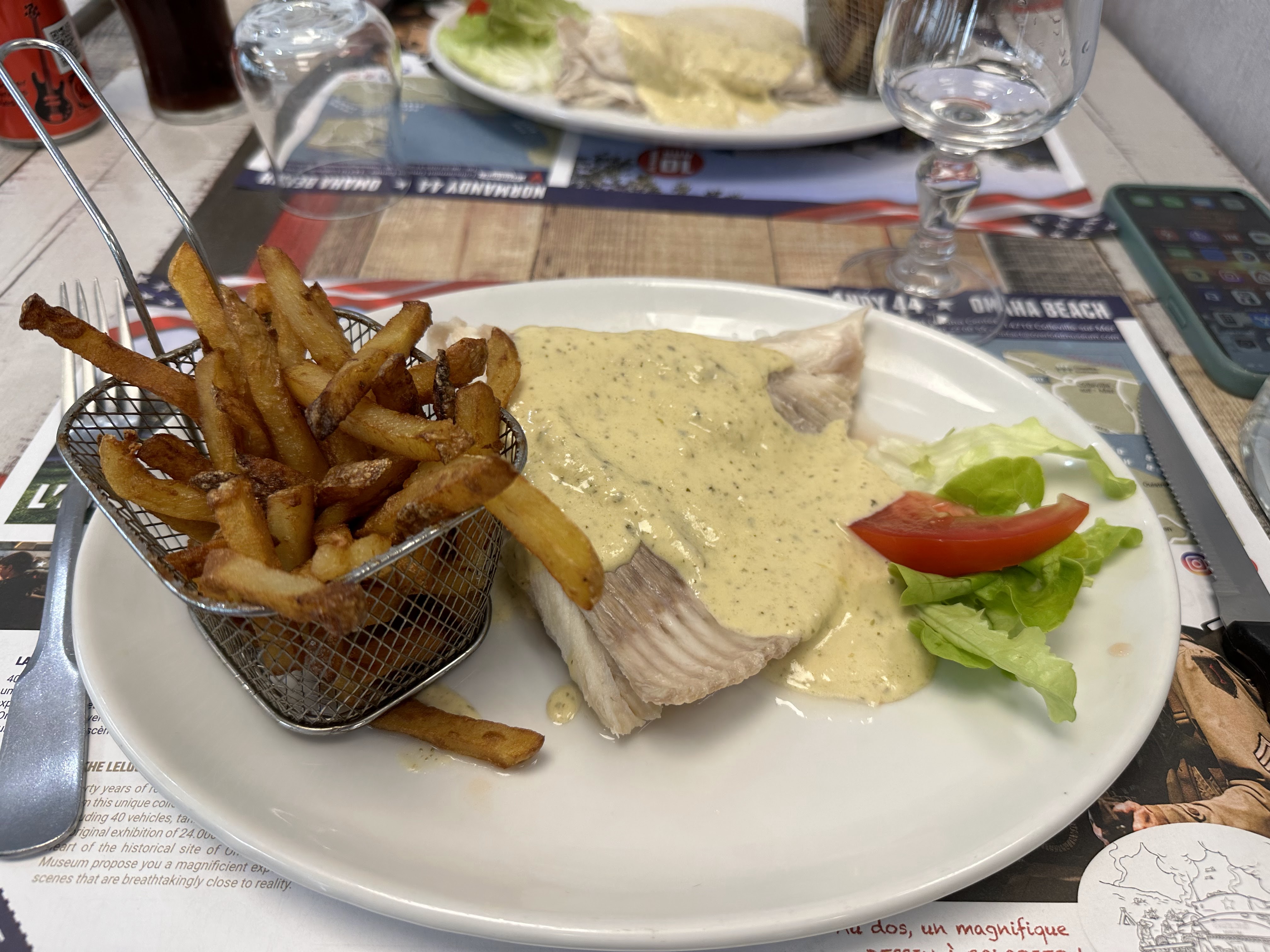 Le cadre tout comme l’accueil dans ce restaurant est agréable. Nous avons pris une formule du jour à 18,50 € : aile de raie avec frites maison cuites à la graisse de bœuf, puis une coupe avec deux boules de glace. Tout est bon. Nous avons particulièrement apprécié le fait que les frites ne soient pas salées, ce qui permet de mieux apprécier leur goût (elles sont très bonnes comme cela). Le service est parfait, rien à dire.