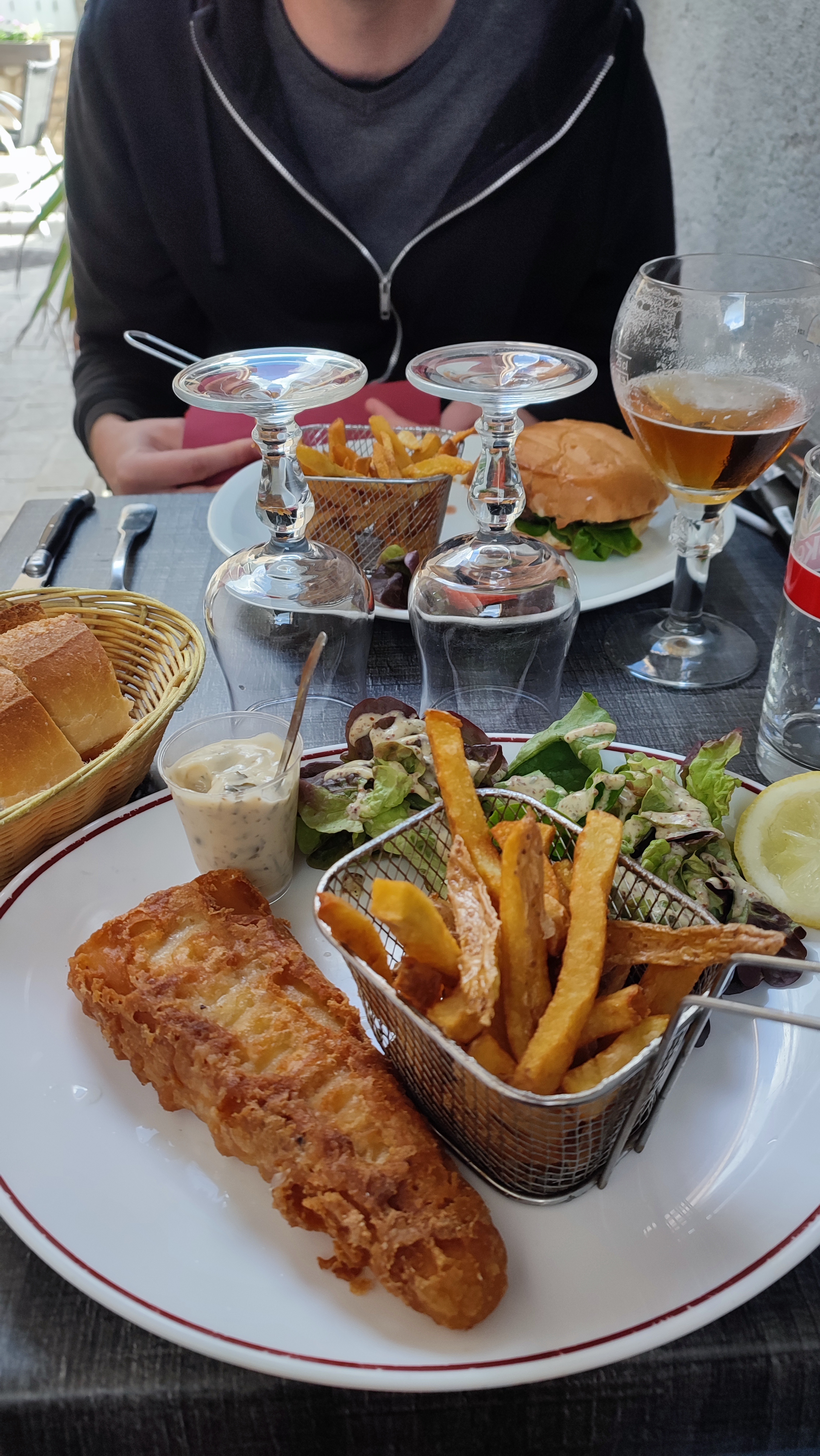 Excellent accueil, le fish'n chips était extra avec un poisson hyper frais et des frites maison, service irréprochable. Emplacement idéal dans une cour intérieure donc à distance du port et des véhicules qui passent non stop en été.... Bref je recommande vivement une étape dans ce lieu !!
