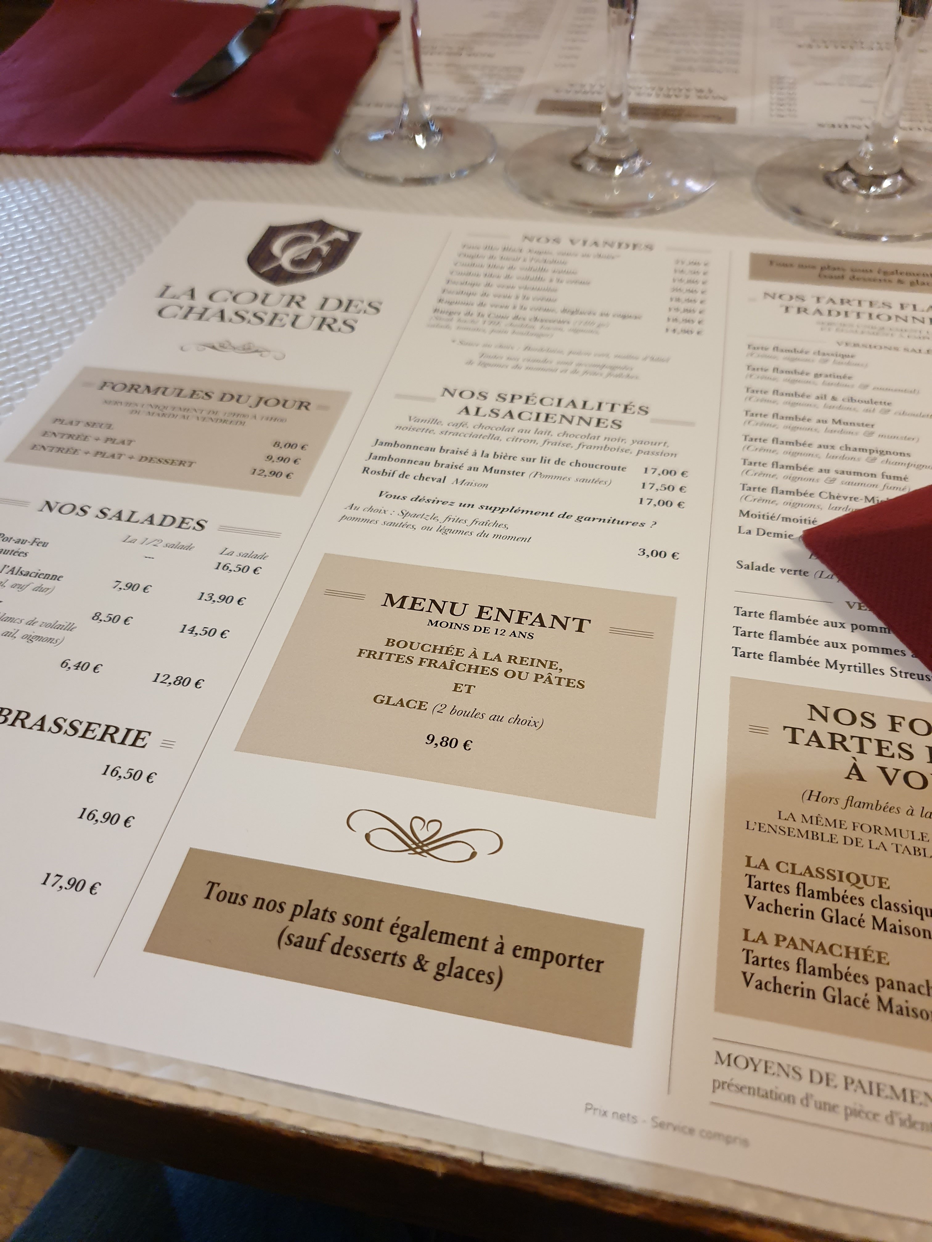 Posté le 20/07/2017 à 15:29"Choisi à la dernière minute, ce restaurant typiquement alsacien s'est avéré être une belle expérience. Le personnel était très sympathique et les plats présentés, très bons et copieusement servis. Une belle carte des vins. Un petit bémol pour les desserts, dont la carte est assez pauvre, ainsi que pour les entrées, que nous n'avons tout simplement pas trouvées... Le foie gras, mentionné en plat à 17 euros, a néanmoins convenu pour une entrée pour deux personnes...globalement satisfait, j'y reviendrai sans doute."