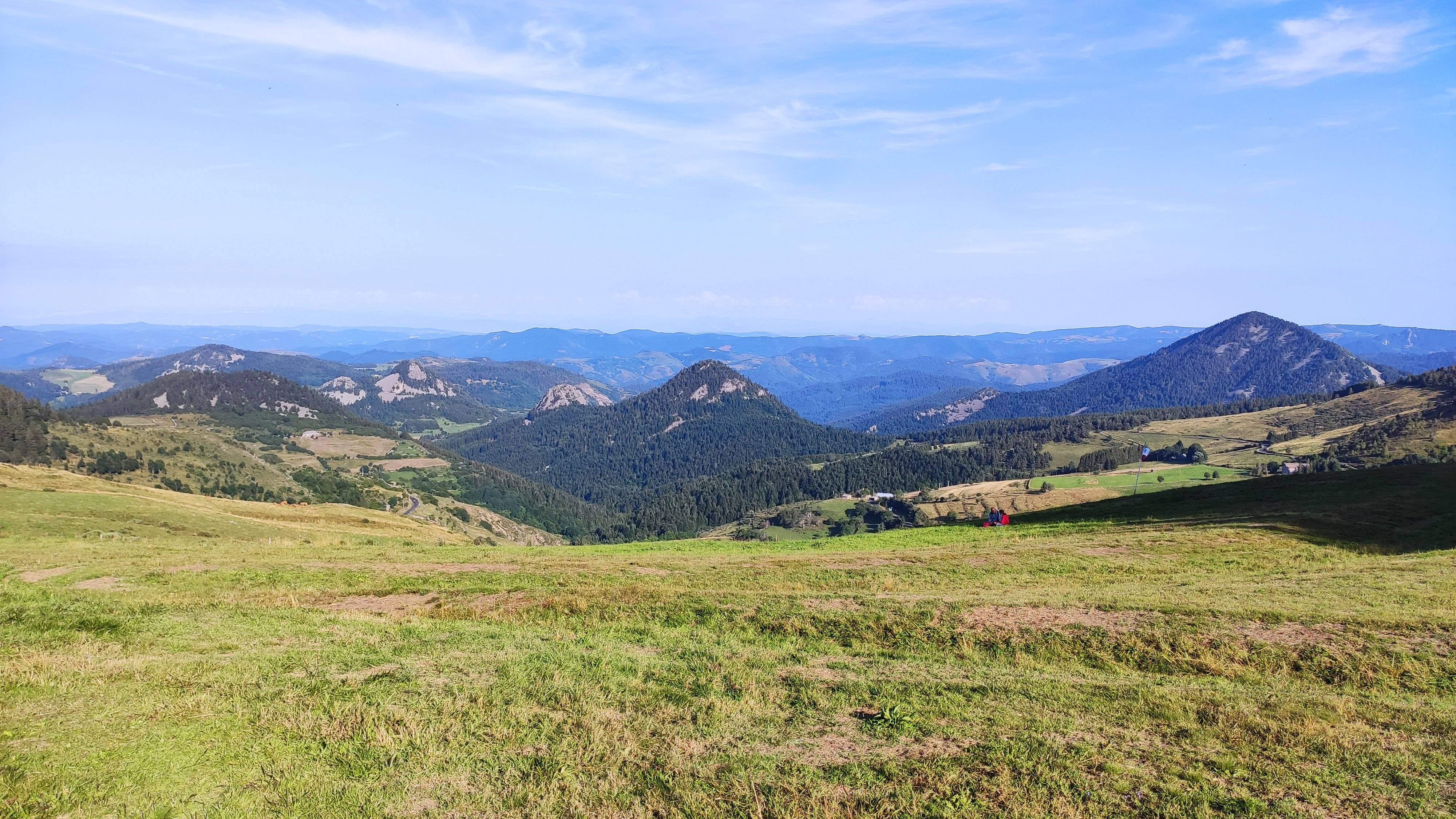 Point de départ des randos du Mézenc. Beaucoup de monde. Beau panorama
