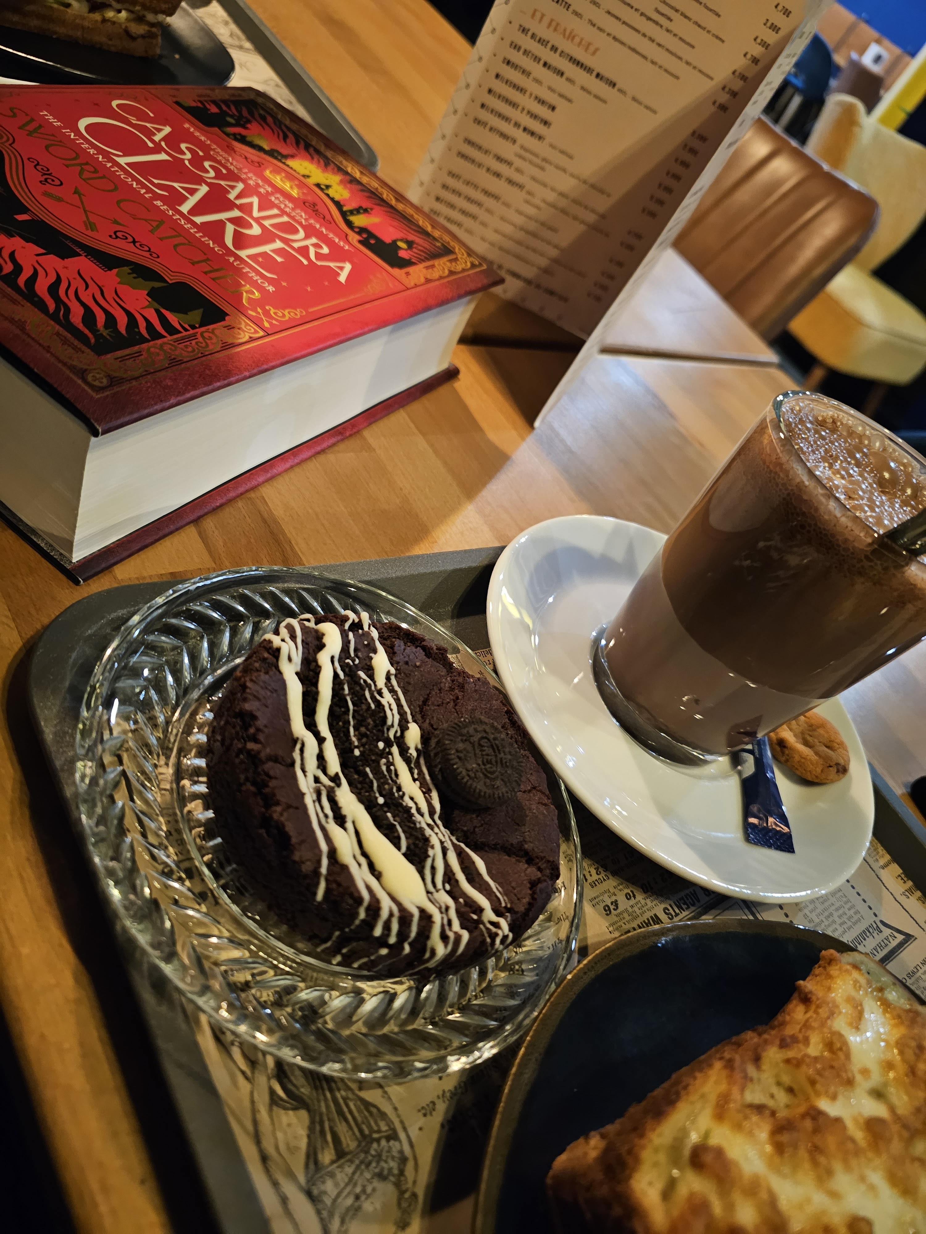 Croc saumon, croc poulet, chocolat chaud et cookies 🍪 Tout était parfait, nous nous sommes bien remplis le ventre. L'endroit est très propres, aérer et bien décoré donnant une agréable ambiance. Le personnel est également agréable et à l'écoute Nous recommandons vivement !
