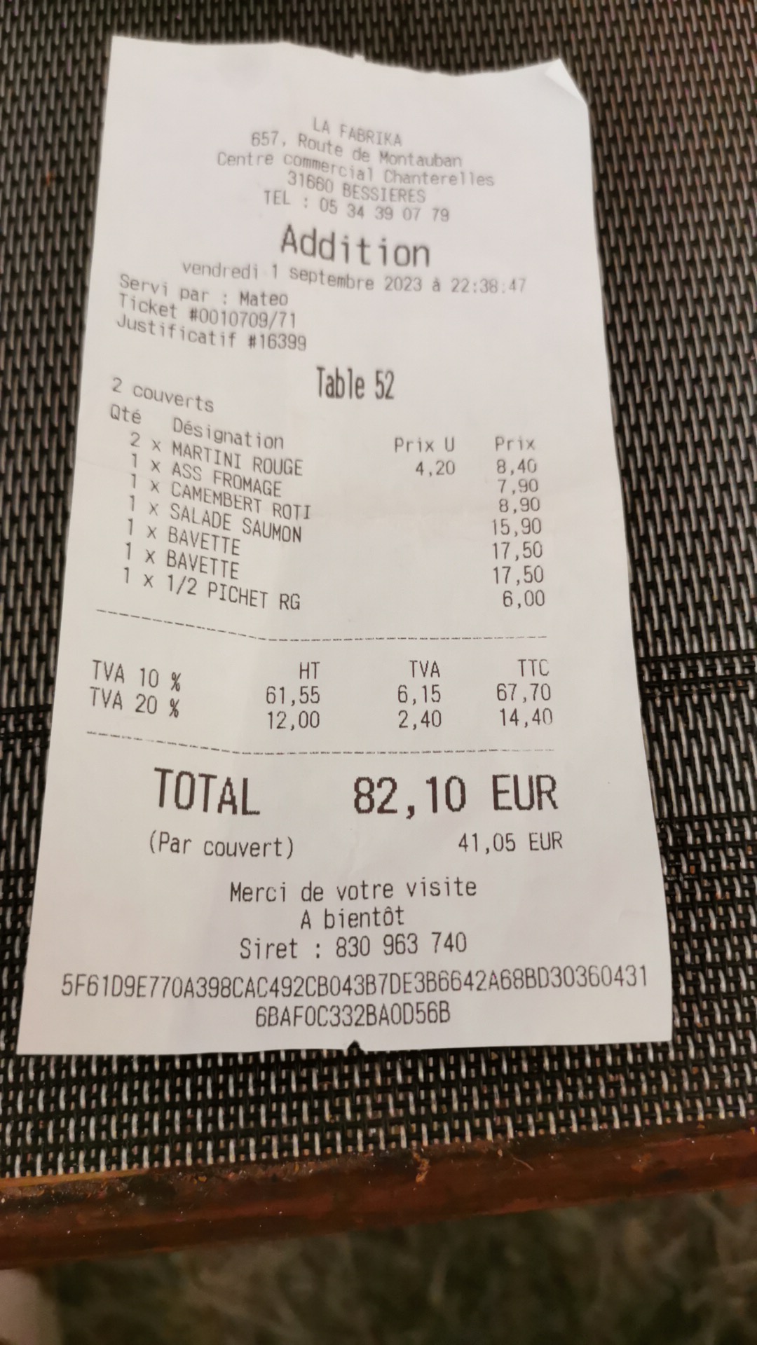 Toujours un plaisir de se trouver à la Fabrika, on mange bien et les serveurs sont sympas et souriants 😃 Bravo à toute l'équipe