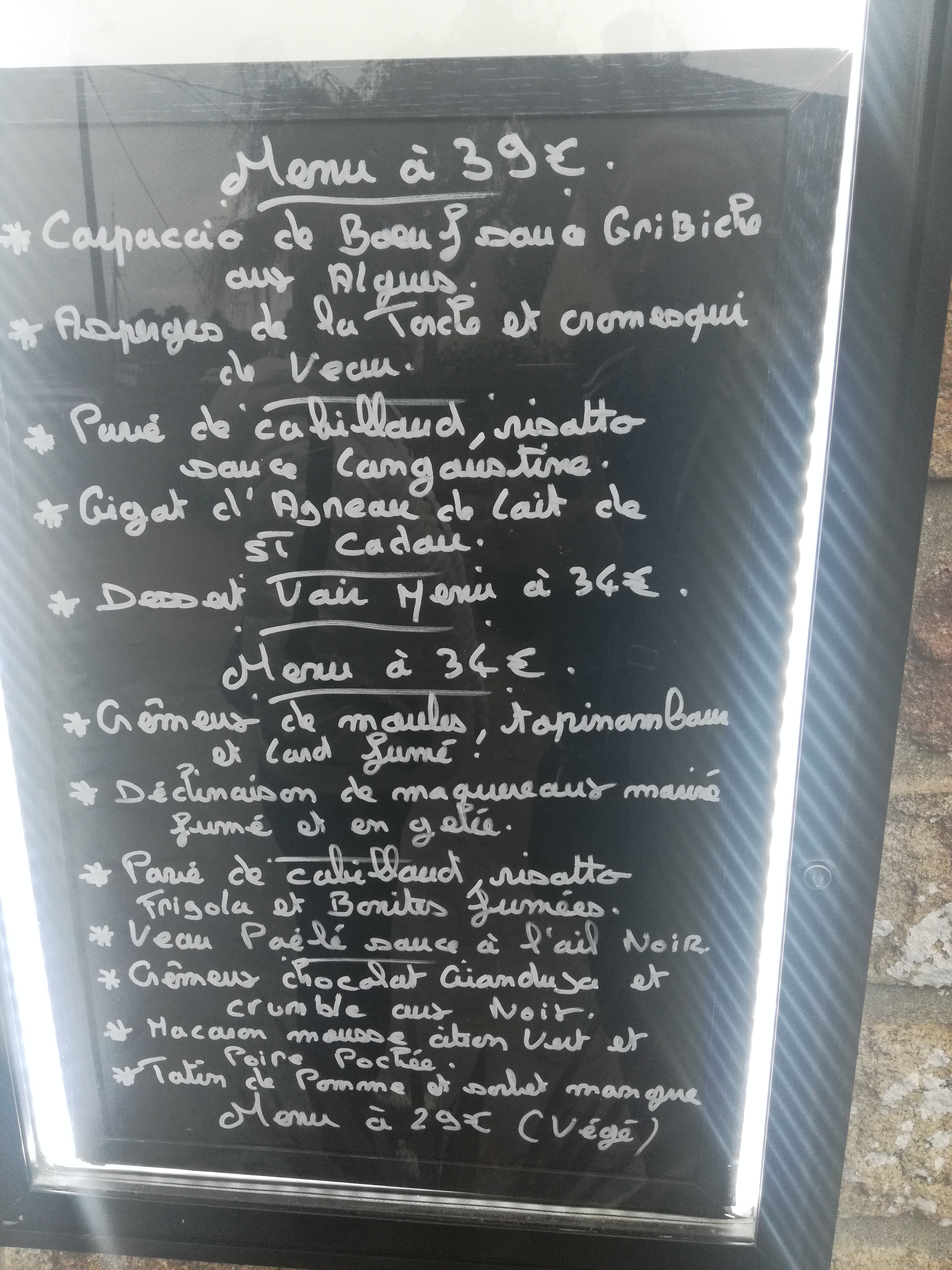 Menu à partir de 34eur. Nous avons très bien mangé, service super. Je recommande vivement, pensez à réserver.