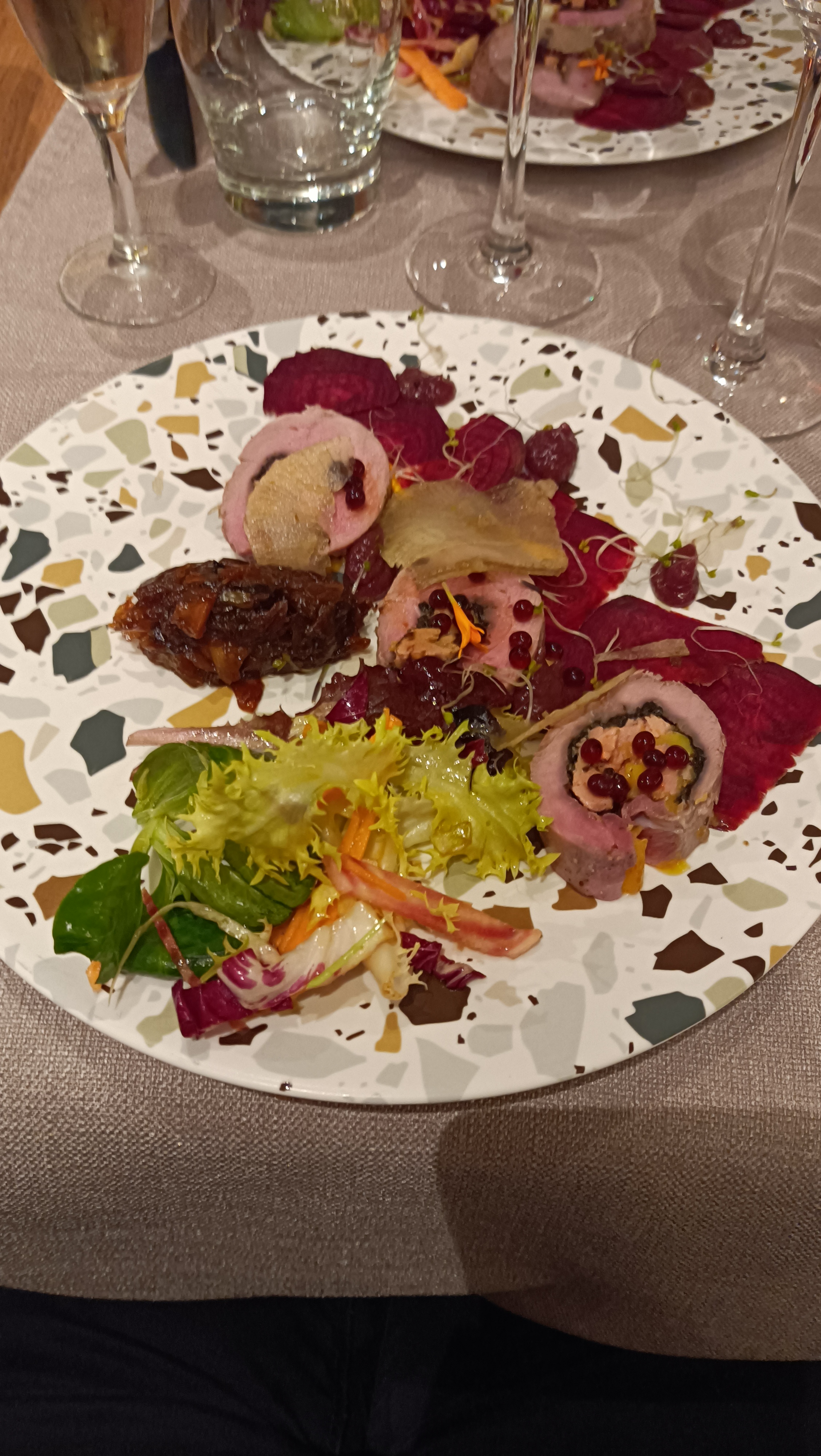 Merci pour ce succulent repas de la saint Sylvestre. Textures et saveurs riches et généreuses, nous ont accompagnés dans ce changement d’année. Quel travail ! 👏