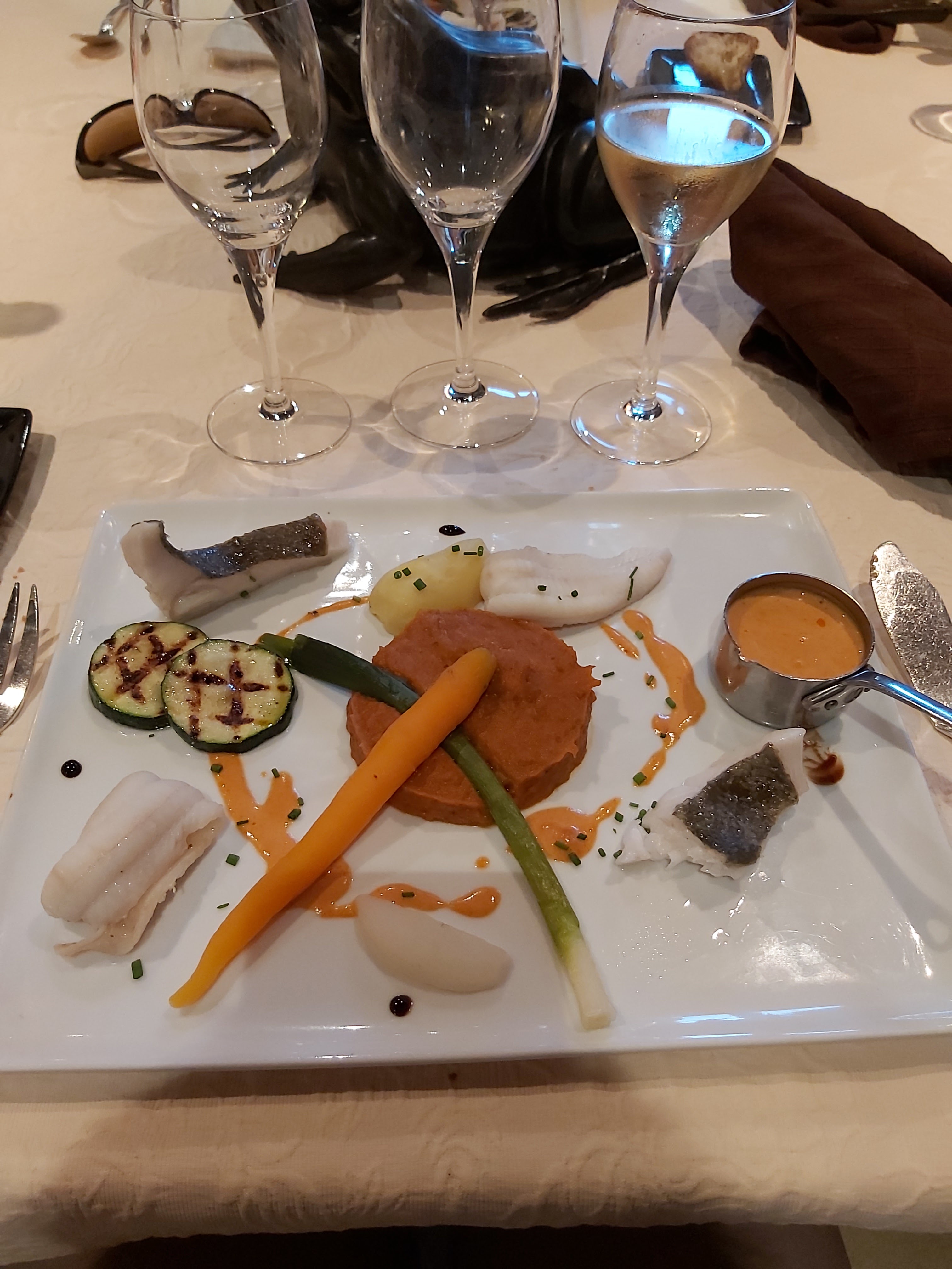 Avec les feux de cheminées, ambiance au top. Le Navarin de homard et saint Jacques.