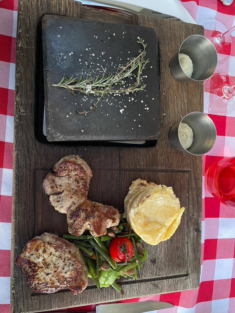 Un cadre reposant où le temps s’est arrêté et n’a aucune emprise sur le présent. Un service impeccable et des chapeaux proposés aux clients pour ne pas souffrir de la chaleur. Des mets excellents, cuisines à partir de produits frais et locaux. Cette expérience culinaire fut un régal pour mes papilles. En entrée, le croûton de pain aux champignons était un régal. La pièce de bœuf était très tendre et cette planche accompagnée de sa pierre chaude pour réalisé la cuisson souhaitée est une excellente idée. Le dessert aux fruits était lui aussi exquis.
