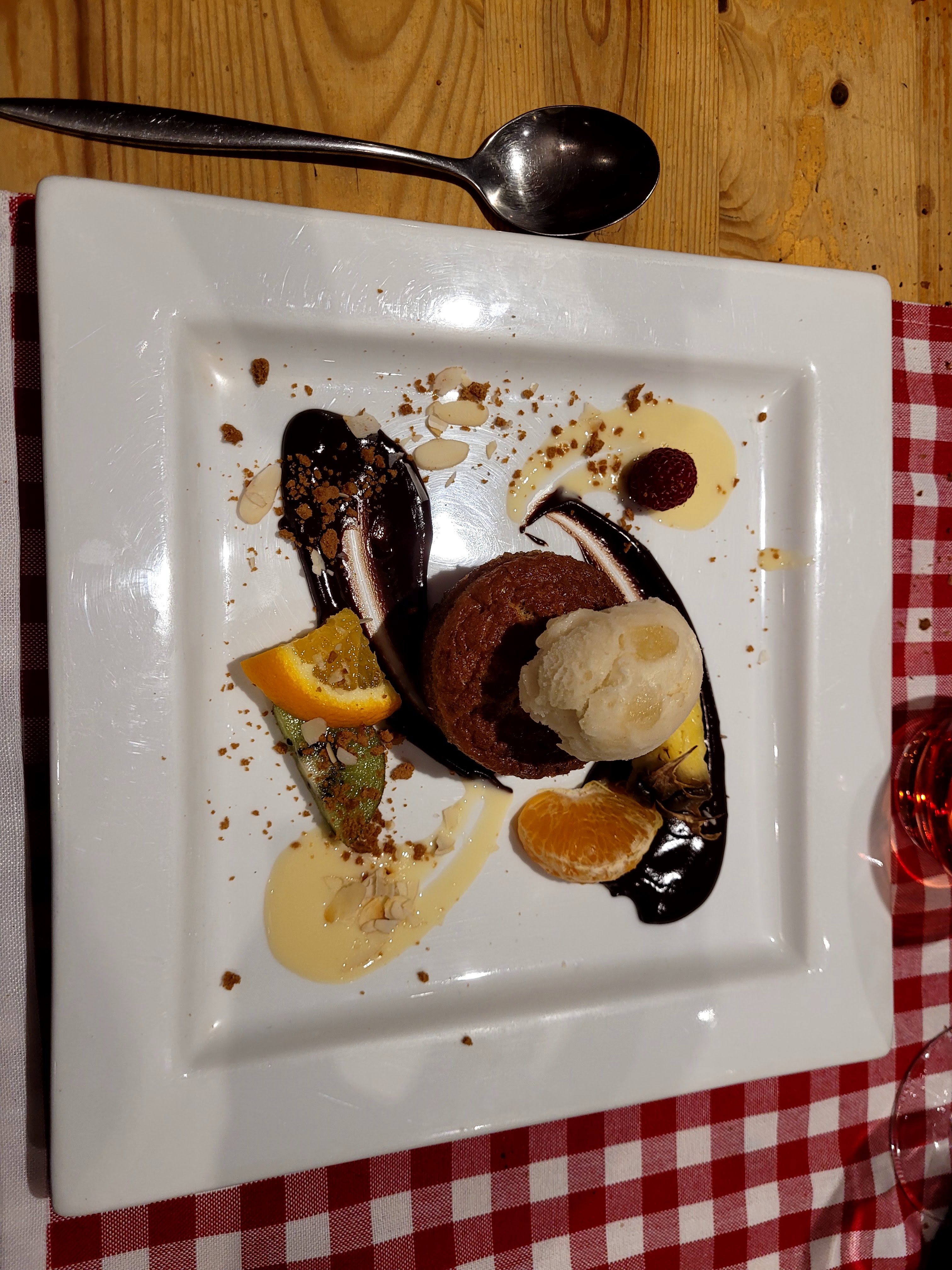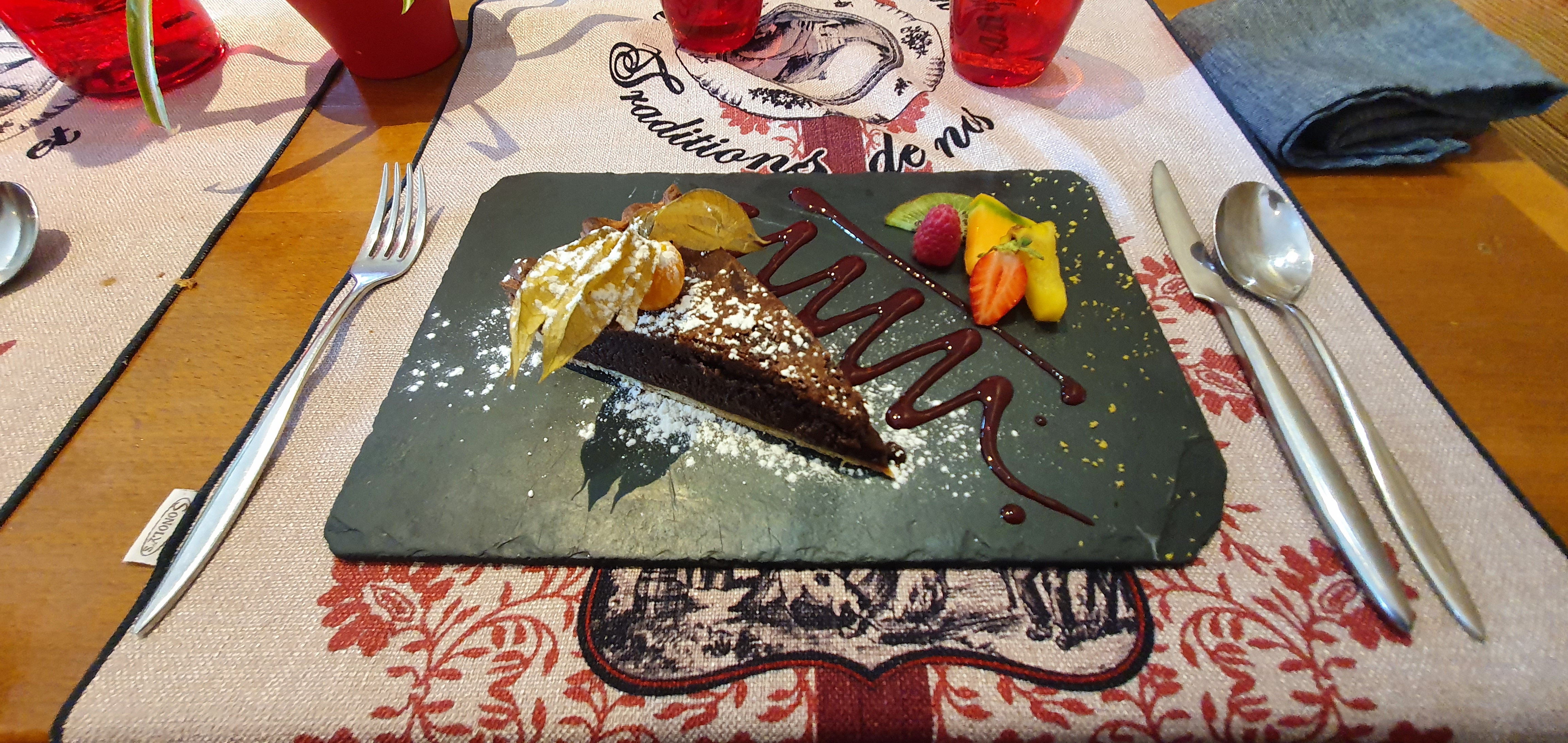 Repas entre collègues. Avons pris une fondue aux cèpes. Tres légère et bonne. Très bonne tarte fondante chocolat comme dessert fait maison. Je recommande cet endroit.