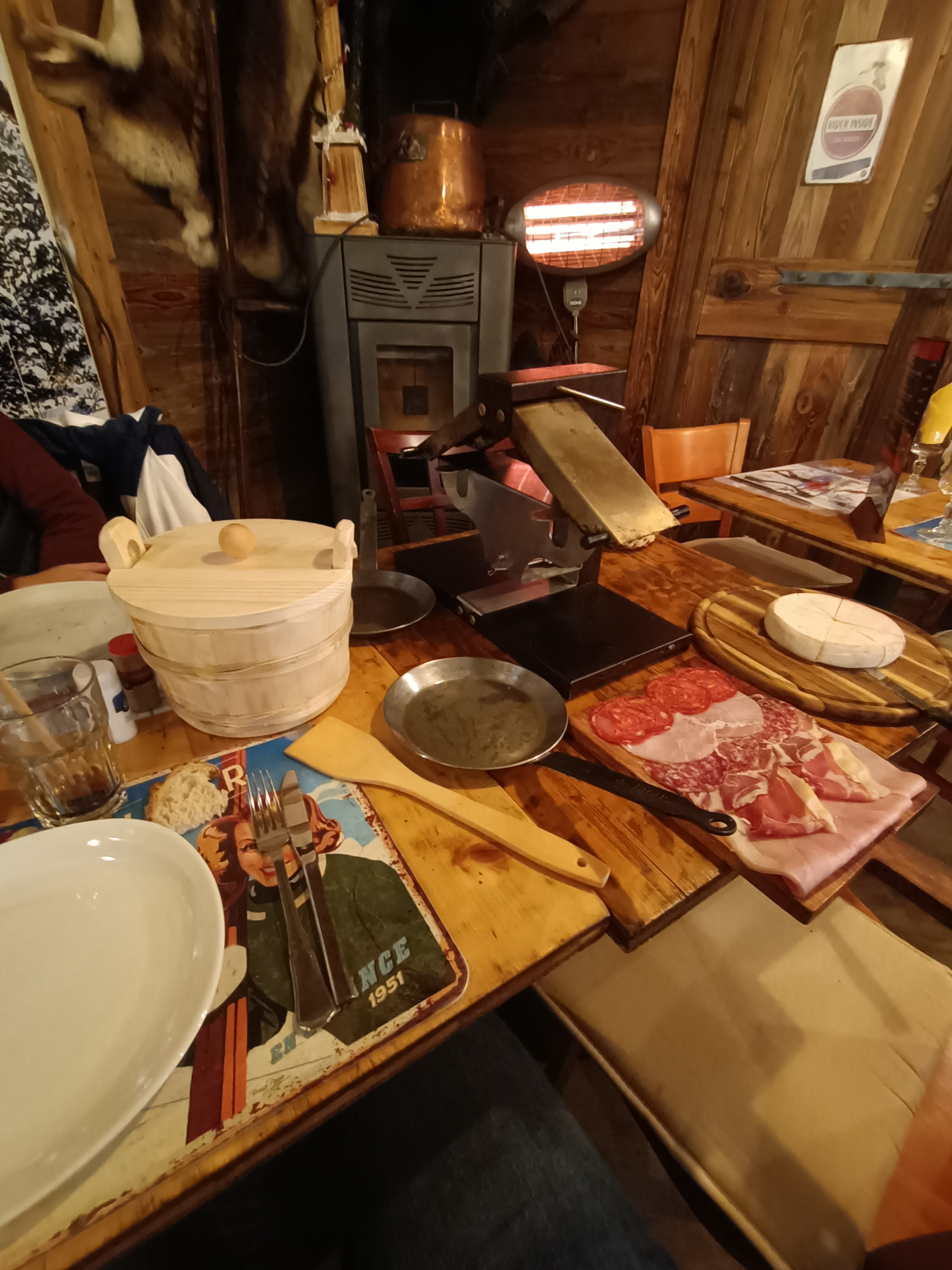 Nous avons commandé à emporter la formule raclette, Excellent!! Produits de qualité, du goût !!Le fromage comme la charcuterie. Nous avons vu le restau, Deco sympa, chaleureux, ça donne envie d’y aller alors à très bientôt!