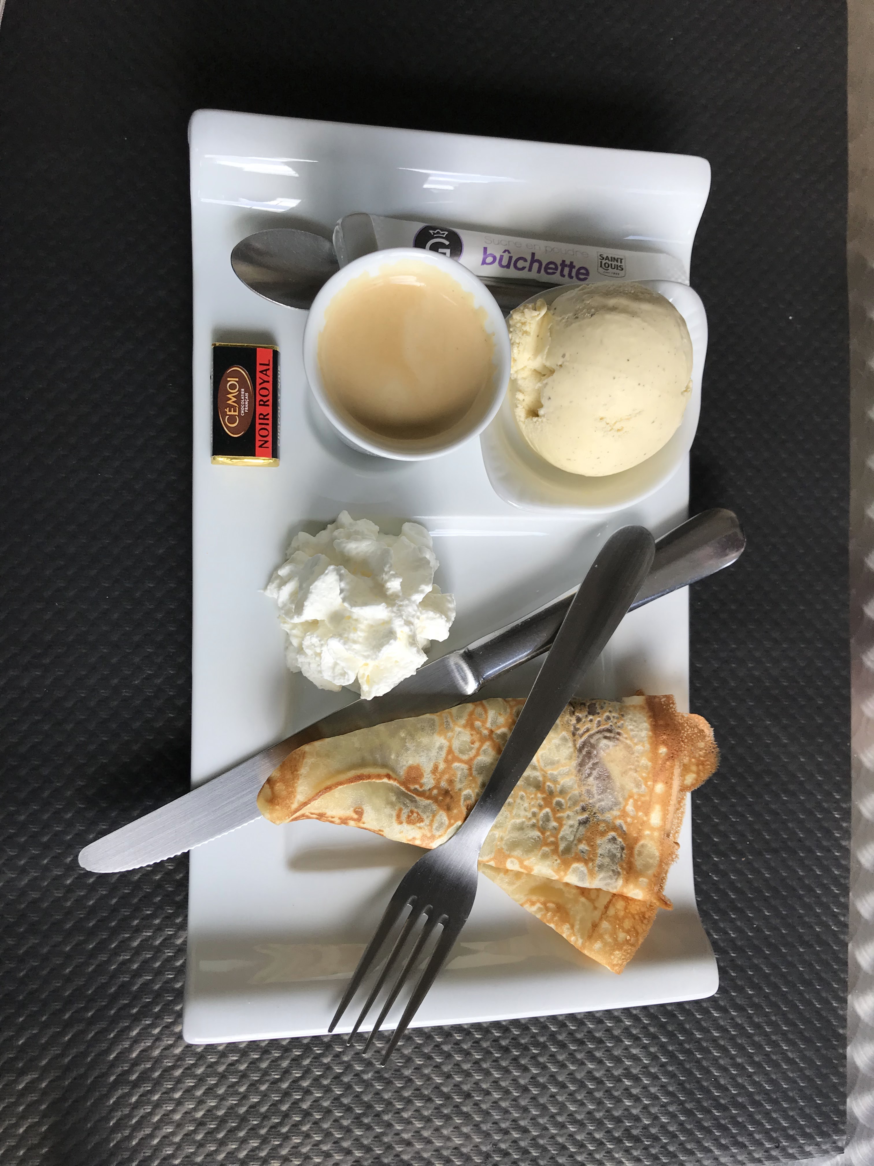 Très bien. Je vous recommande en dessert la crêpe gourmandine