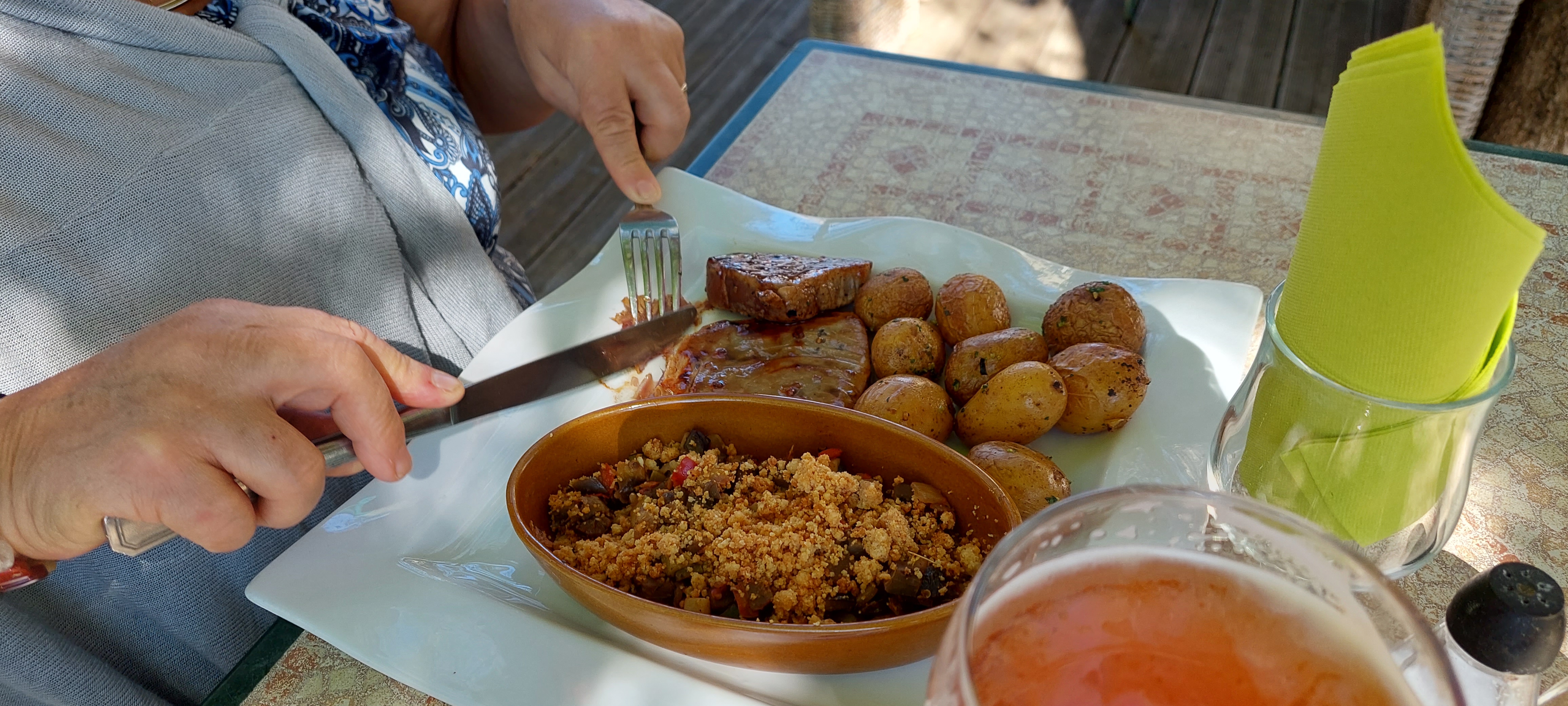 Repas en terrasse ombragée. Accueil sympathique, cuisine simple mais savoureuse, service top. Que du bonheur