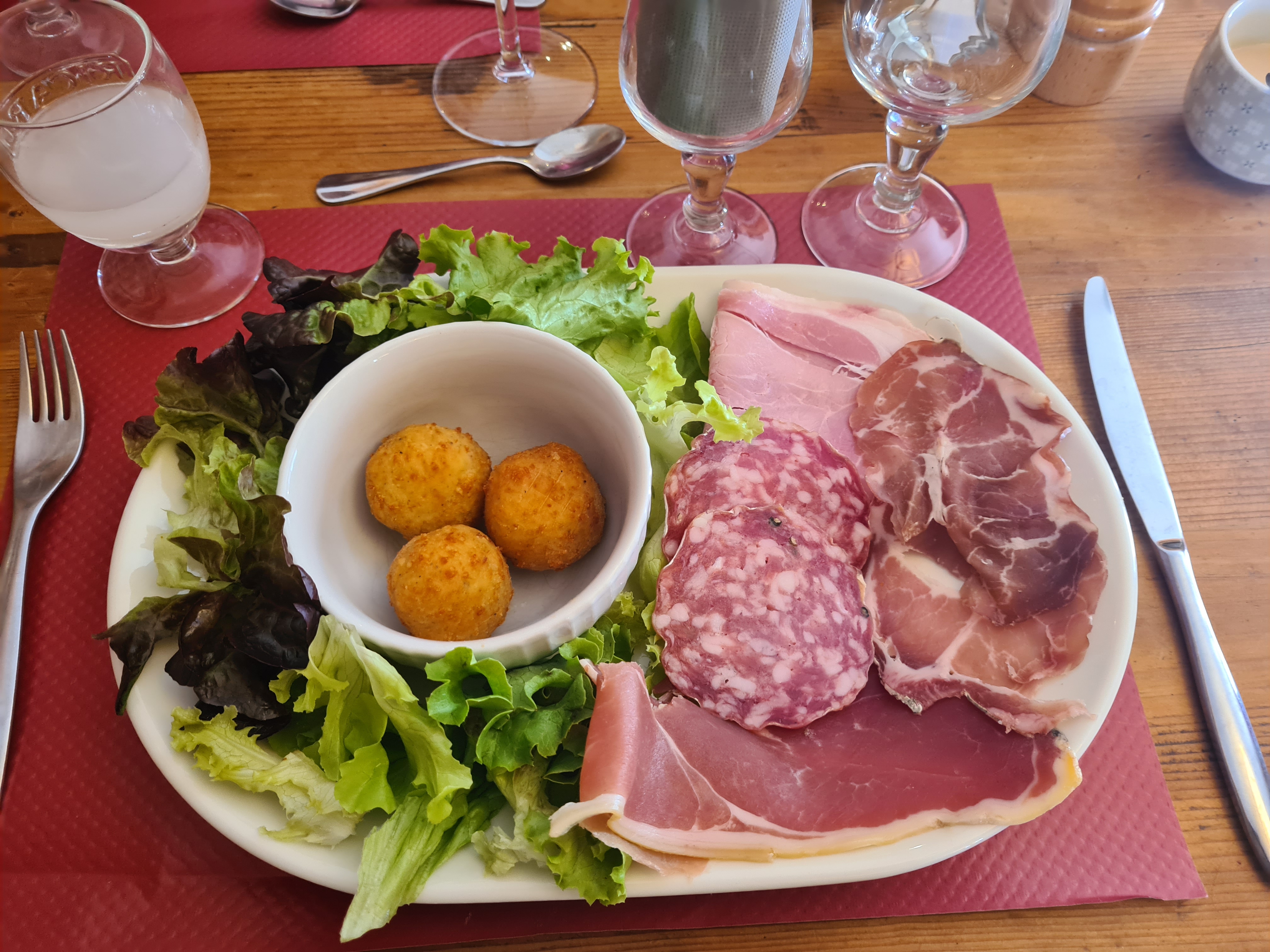 Une petite randonnée à Menthières, puis une boisson fraîche et un repas avec des gens sympathiques. Petit, simple et confortable ! Ok, je l'admets, je passe le plus souvent devant sur mon moto et je m'arrête de temps en temps pour boire et grignoter.