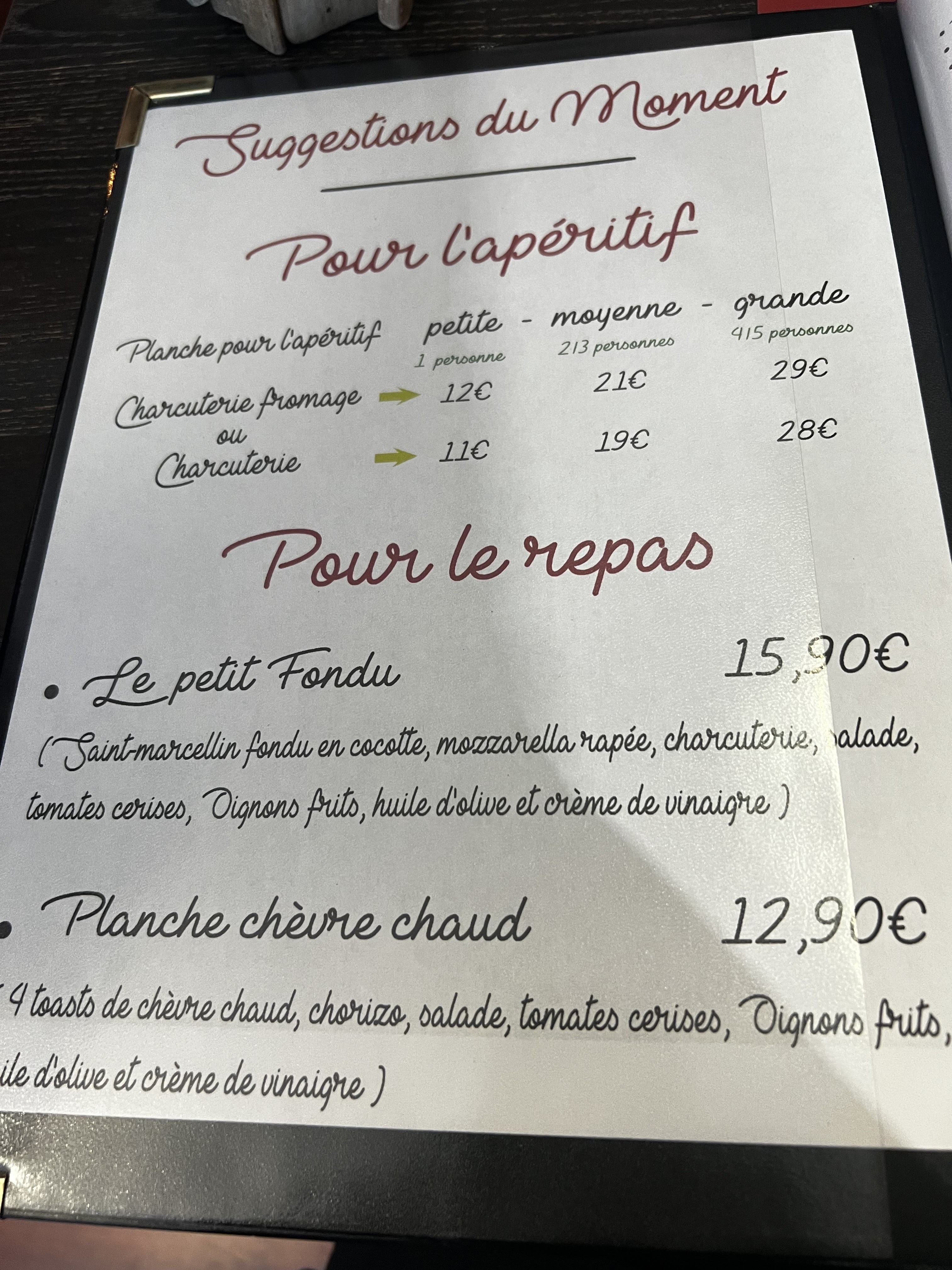 Personnel sympathique planches proposées délicieuses et préparées rapidement on aime beaucoup