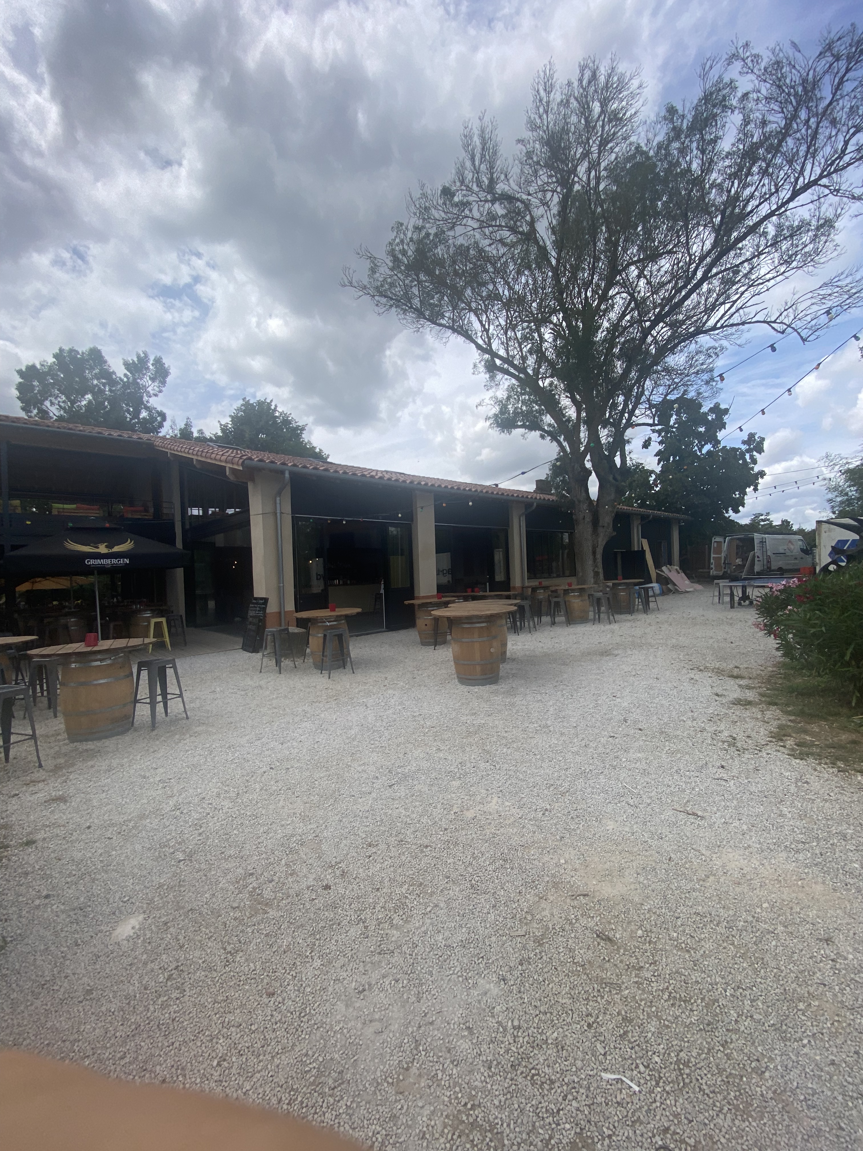 Endroit convivial et accueillant.Des espaces ombragés, banquettes style palette confortables, un bar à cocktails (avec de bons conseils). Pour se restaurer :au choix food truck (hot dog ou burger, prix allant de 10 à 15 euros) ou tapas et autres plats(saucisse, côté de porc noir, entrecôtes... Salades de 13 à 26 euros) et cabane à desserts. Un excellent concept . Testé un dimanche midi en famille, occasion pour les enfants de profiter du spectacle de cirque sous le petit chapiteau prévu à cet effet ( spectacle en juillet et août seulement cette année). On apprecie aussi l esprit local: viande du boucher de gragnague... Piscine sur place mais non ouverte cette année pour cause de la réglementation sanitaire. Petite basse cour avec dindons, oies pour la joie des plus petits.