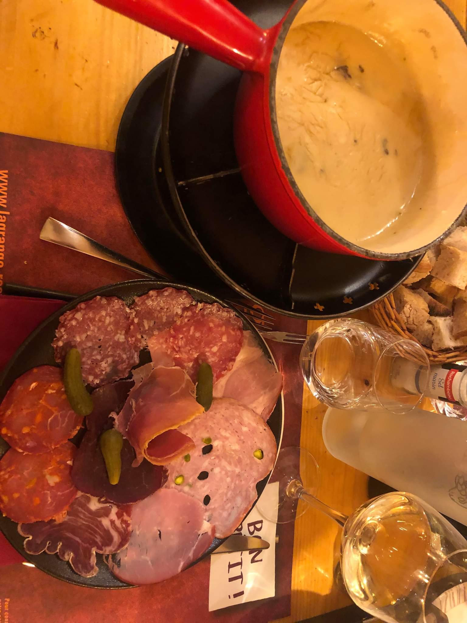 Posté le 04/10/2018 à 22:48"Accueil nickel. Serveur au top . Fondue vin blanc comté + charcuterie : de toute beauté. Cadre bien sympatoch'. Bref , foncez si vous voulez vous envoyez derrière le buffet une bonne fondue comté vin blanc . Le plat a été récuré par nos soins (voir photo)."