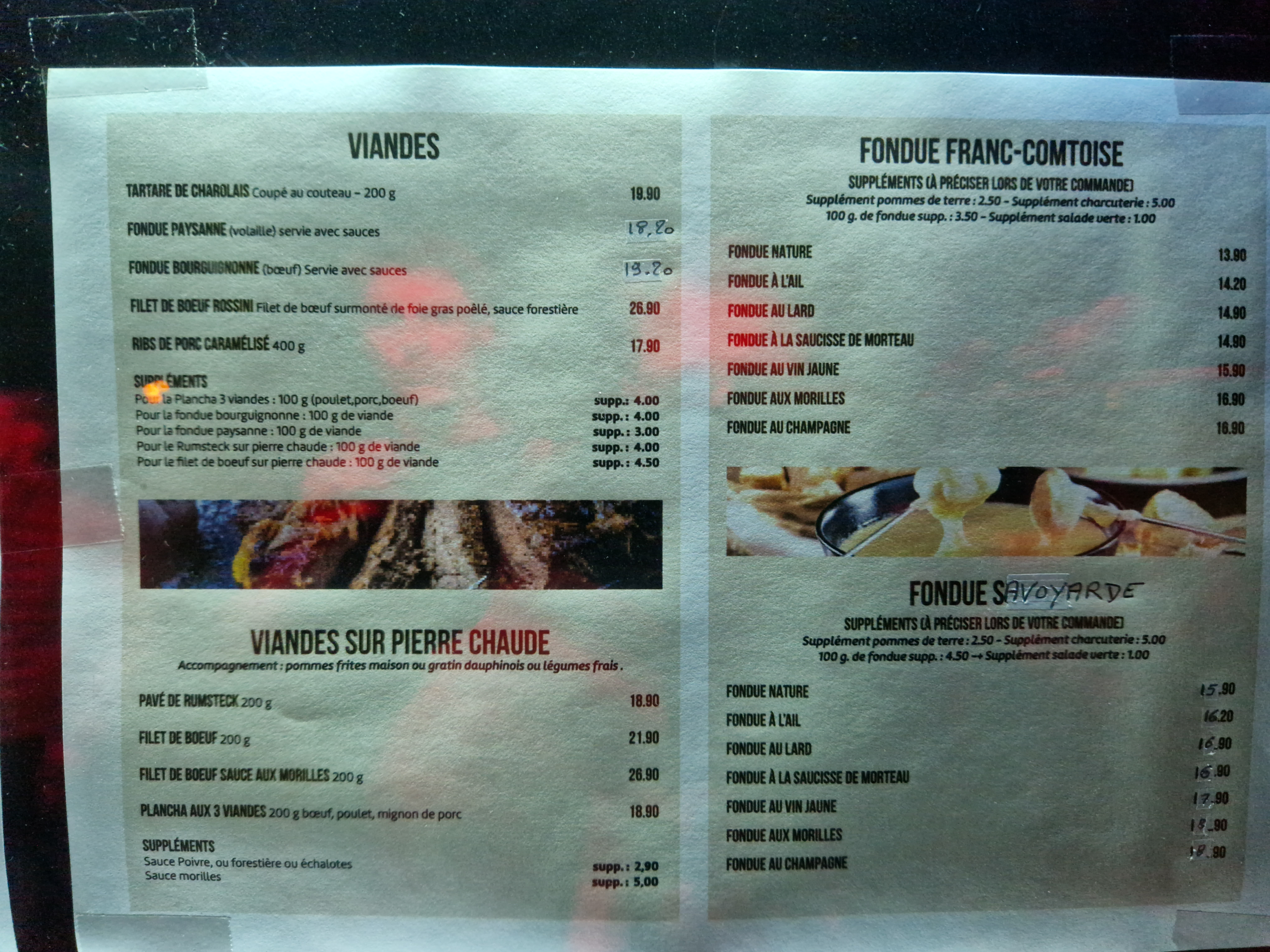 Posté le 15/03/2018 à 04:57"ÉDIT qui remplace mon précédent avis complimentant la cuisine : Sur 4 passage dans ce restaurant, on nous a facturé par deux fois un supplément imprévu : -Une fois lorsque j'ai demandé s'il était possible de ne pas avoir de viande sur plateau et de mettre plus de pommes de terres à la place : La serveuse accepte mais je paie finalement le supplément pomme de terre, la bonne blague... -Et à notre dernier passage lors d'une fondue paysanne à volonté : Nous demondons si les frittes en accompagnement sont également à volonté, on nous dit que oui. On nous a pourtant facturé un supplément de plus..."