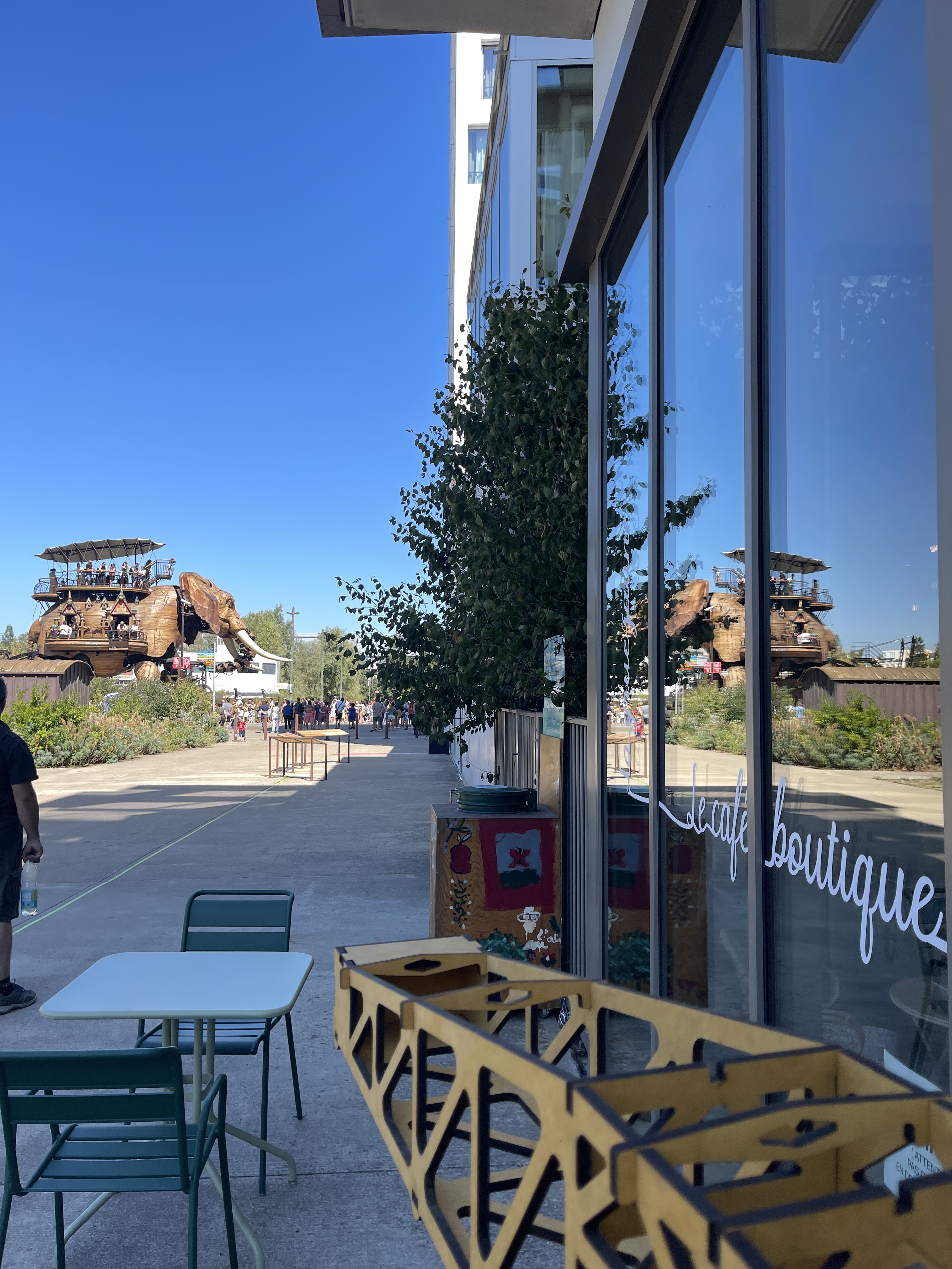 Merci Winncie notre café crêperie boutique est en effet à deux pas du Carrousel des Mondes marins et permet aussi en terrasse de saluer le grand éléphant lors de ses promenades sur l'île de Nantes.