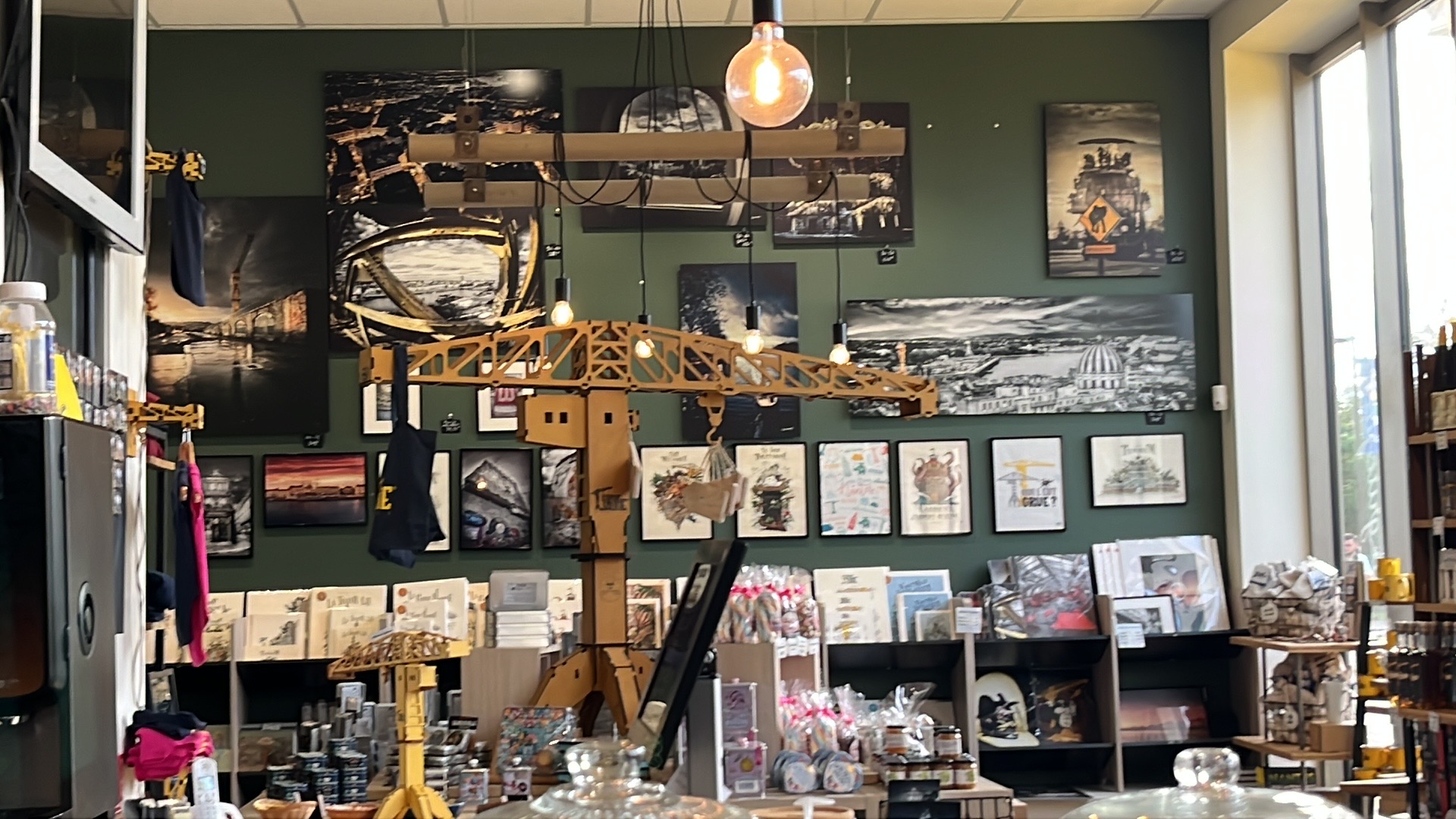 Très belle boutique et accueil très chaleureux. Qu'est ce qu'elle est belle cette grue jaune !