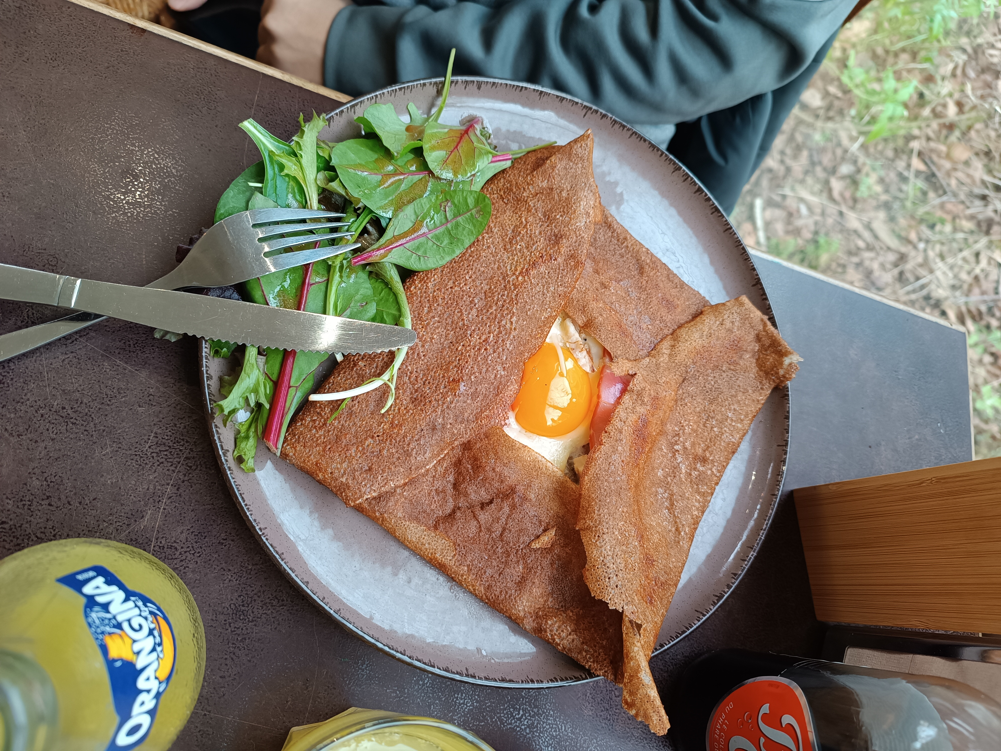 Posté le 27/05/2023 à 16:15"Service très rapide au déjeuner. J’ai ADOOOORÉ ma formule crêpe salée et crêpe sucrée. Quel délice. En accompagnement d’un délicieux cidre, miam ! Beau marketing avec la grue jaune à proximité et visible depuis la petite terrasse extérieure."