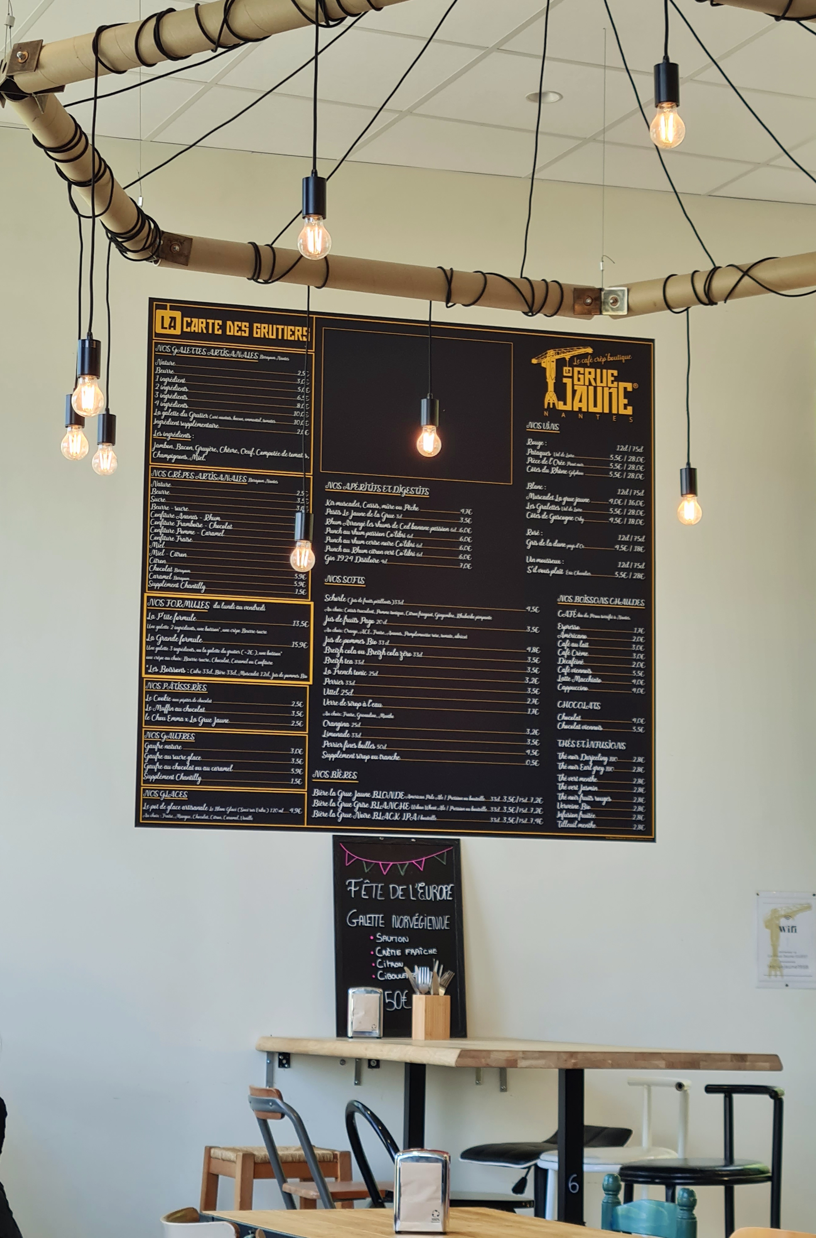 Nous avons adoré cet endroit ! Les Galettes étaient délicieuses et très créatives avec le choix des ingrédients. Le personnel était sympathique et très efficace. L'atmosphère pendant le déjeuner était agréable avec le soleil pénétrant dans le bel espace lumineux avec de hauts plafonds. Nous reviendrons ici chaque fois que nous serons à Nantes ! Merci LaGrue Jaune !