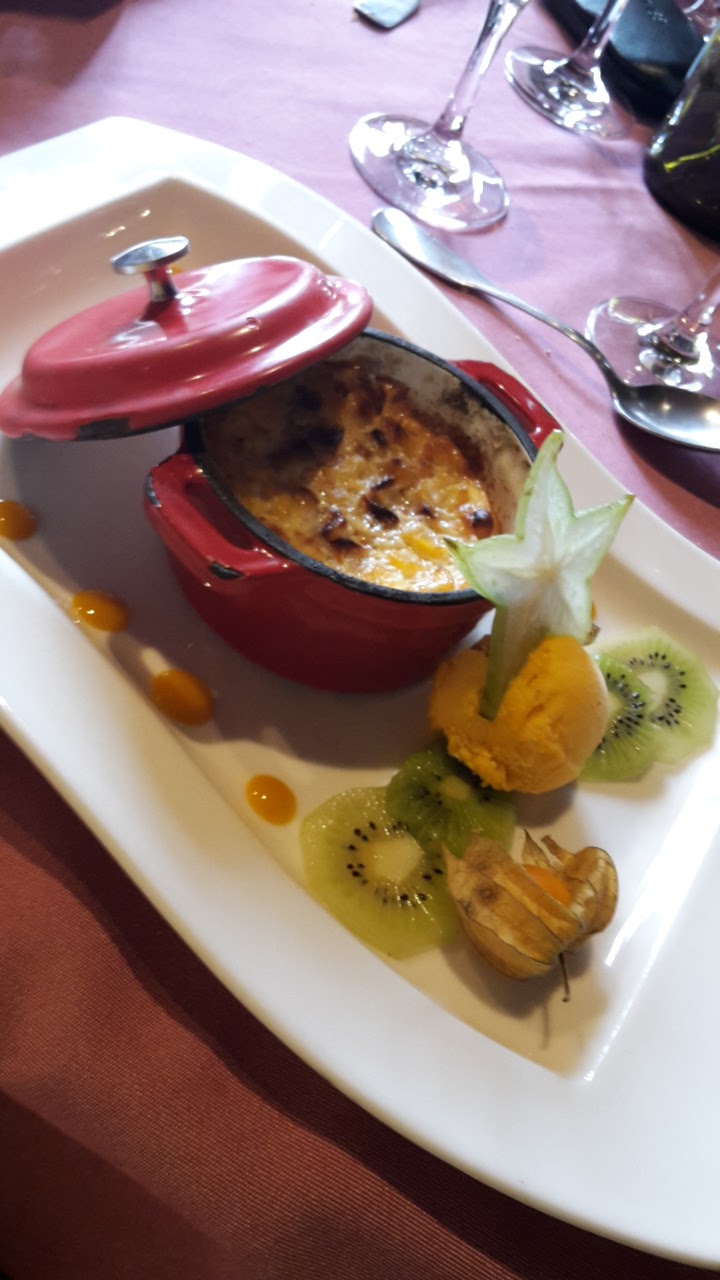 Jolie découverte dans ce restaurant pour un repas en couple. Cadre et serveuse très sympathique. Portion généreuse pour un prix très correct. Nous reviendrons avec plaisir ! Apéro x2: Cocktail de la jument verte + mise en bouche Entrées x2 : Fondant de foie gras de canard du Lot, chutney de fruits exotiques sur un pain brioché aux épices Plat 1: Faux filet charolais à la moutarde à l'ancienne Plat 2: Médaillon de veau aux girolles, mousseline de patate douce et son jus de veau crémé Fromages aux choix (brie/reblochon/bleu/chèvre...) avec salades x2 Dessert 1: Crème brûlée fruits rouges, sorbet citron Dessert 2: Verrine fraise, pistache en duo Nous nous sommes régalés ! Je le conseille avec plaisir !