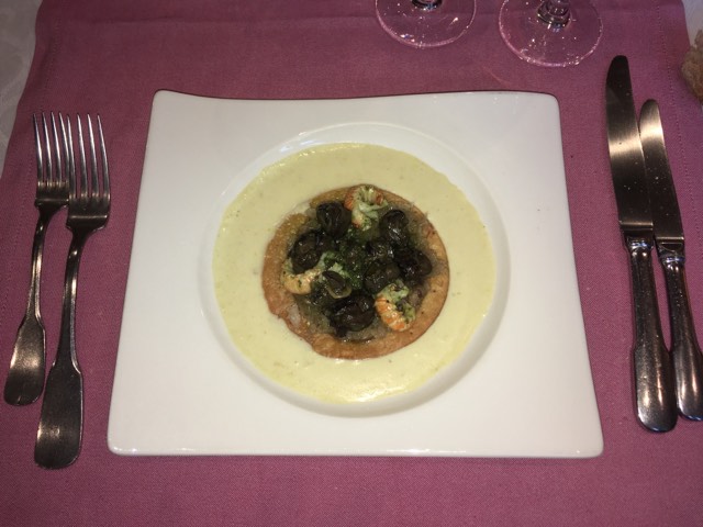 Un peu déçue....bon mais sans plus. entrée annoncé mesclum (mâche) effiloché de raie ( morceau entier !!!! Mais tres bon) Plat Bar rôti choux fleur ( 4 mini bouquet, jolies couleurs) mousseline d artichaut j ai failli pas la voir. Je l ai senti au goût !!! Vin servi trop froid . N y retournerai pas