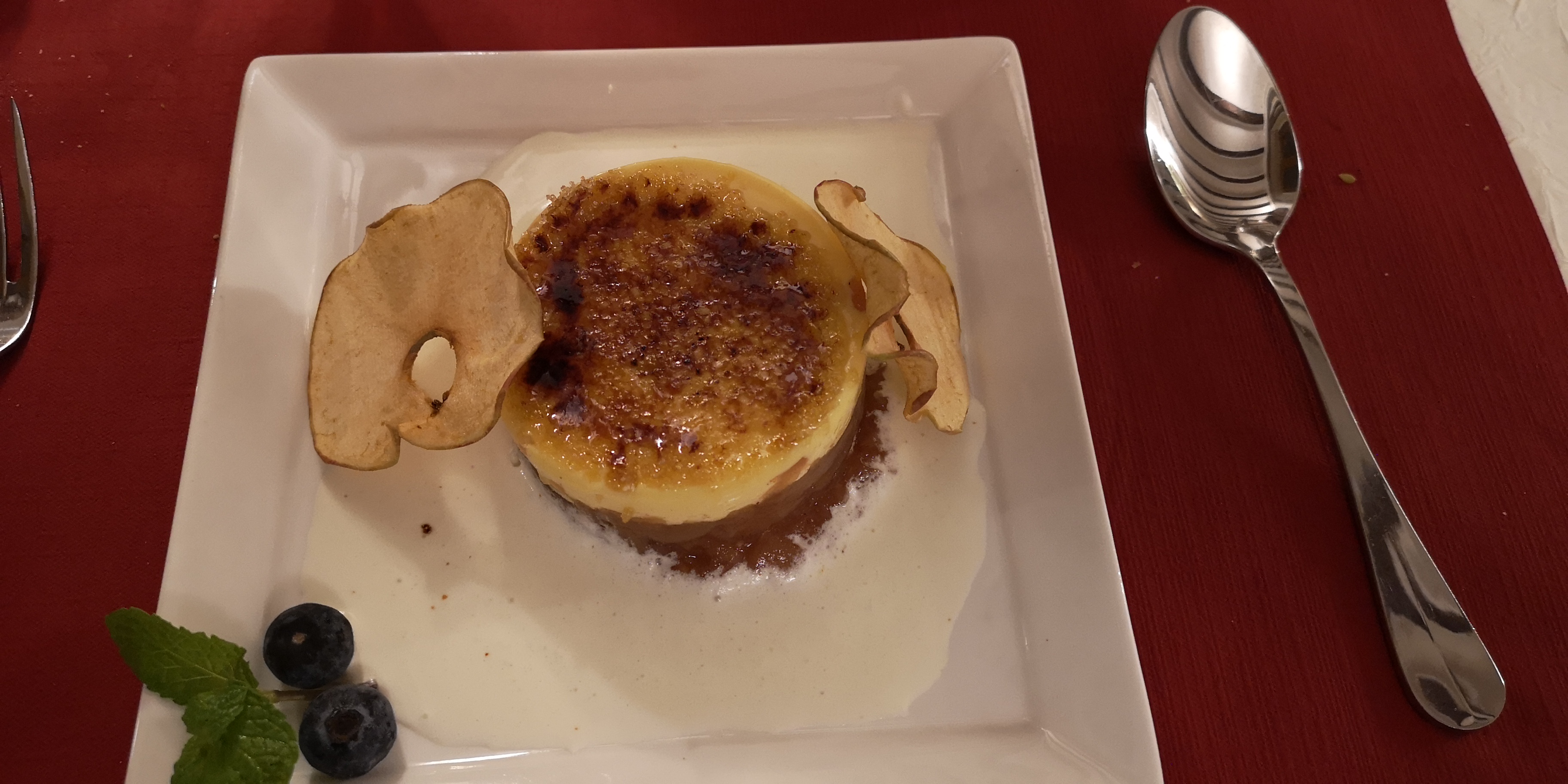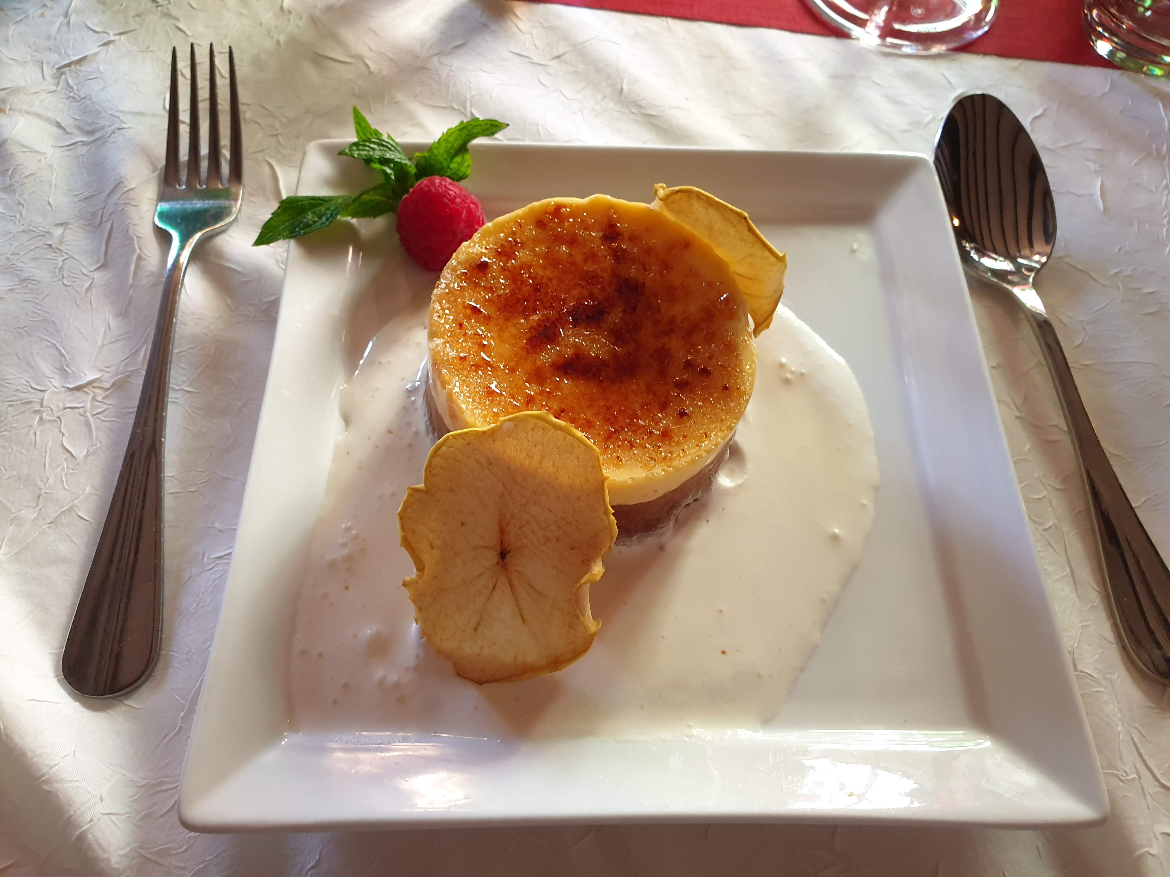 Cadre agreable, belle pièce avec cheminée. Nous avons bien mangé, tout était bon sauf le crumble pas assez cuites (les pommes étaient encore croquantes)