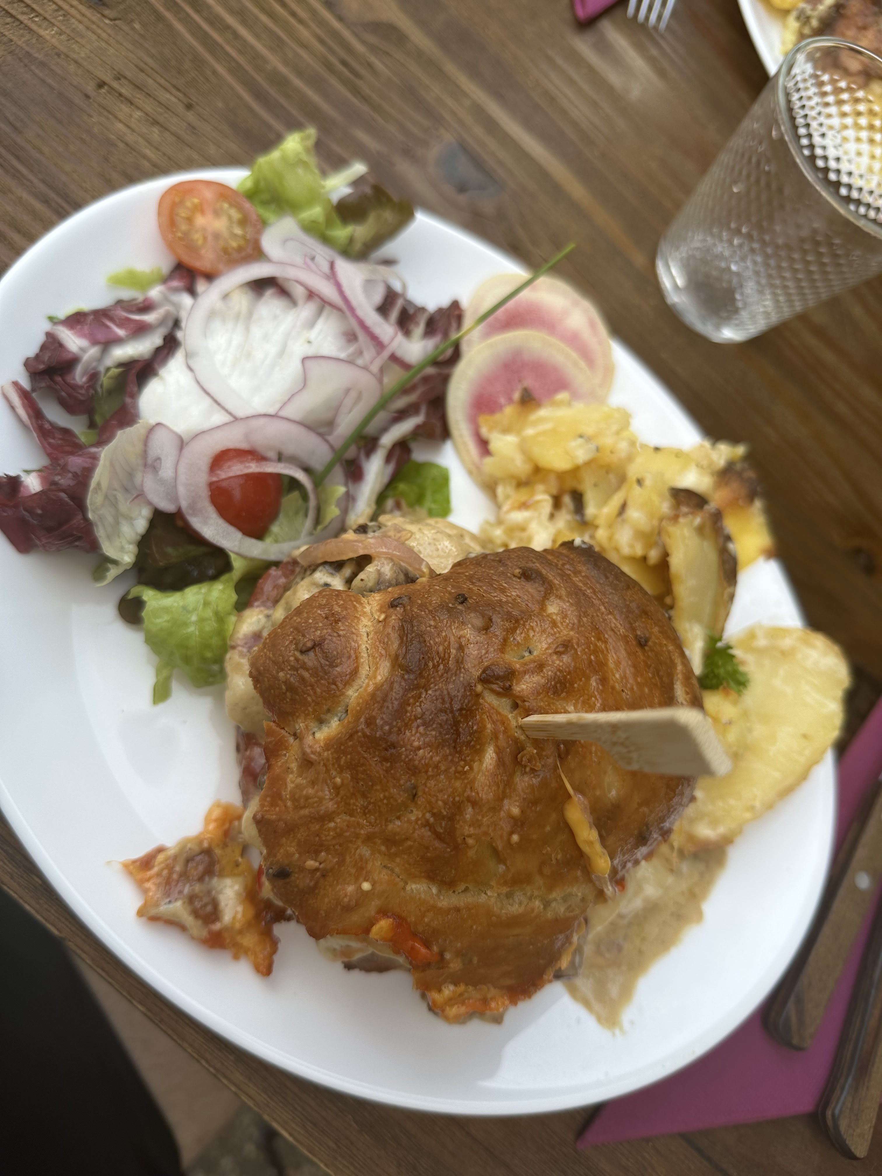 Repas en terrasse succulent et très copieux.Un accueil original et agréable, vraiment sympa 👍