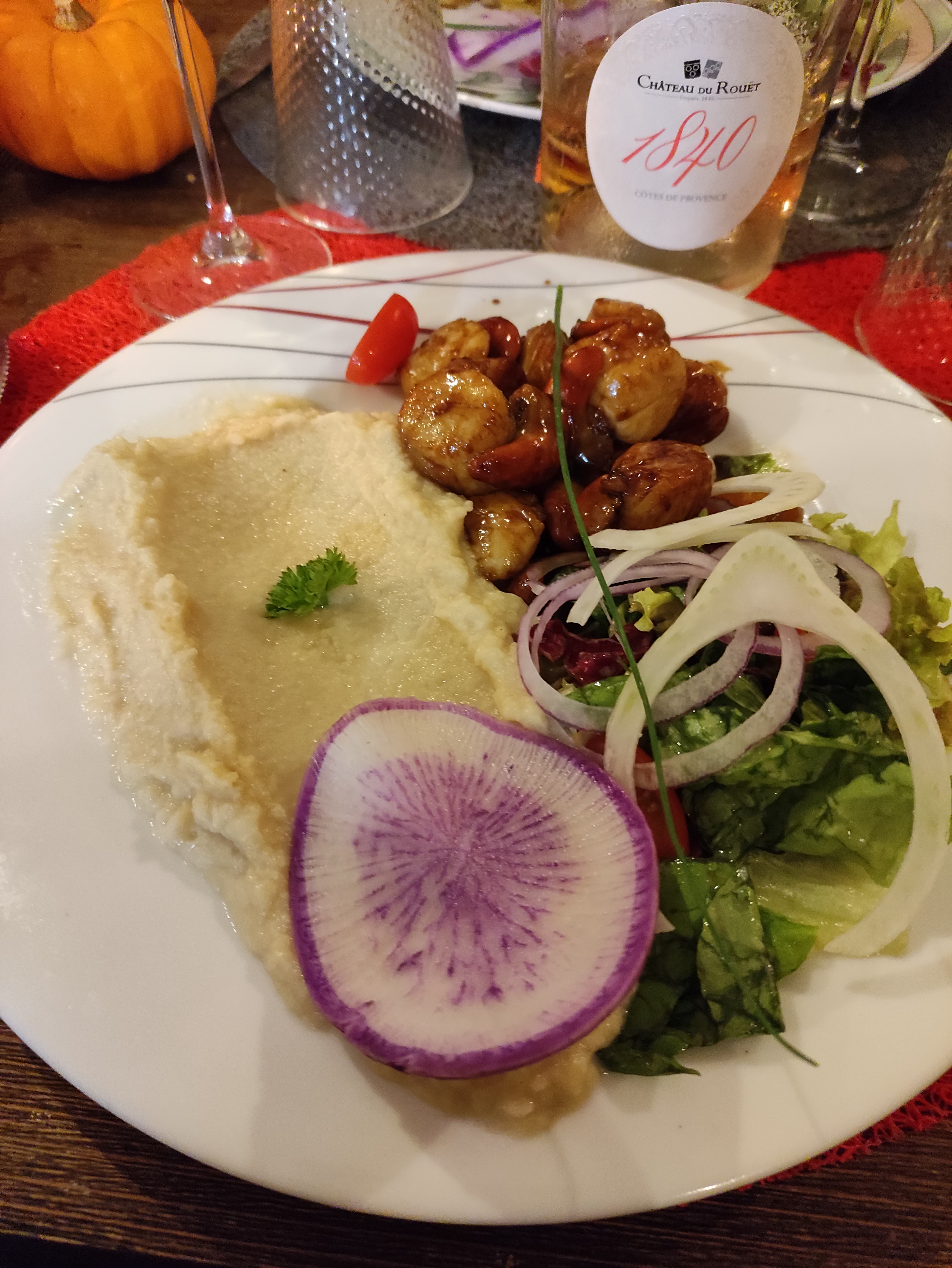 J'ai goûté aux généreuses coquilles Saint Jacques accompagnées d'un écrasé excellent dont je ne dévoilerai pas les ingrédients étonnants... Quant au dessert du jour au doux parfum de cassis et son biscuit maison il est divin. Je confirme c'est une très bonne adresse.