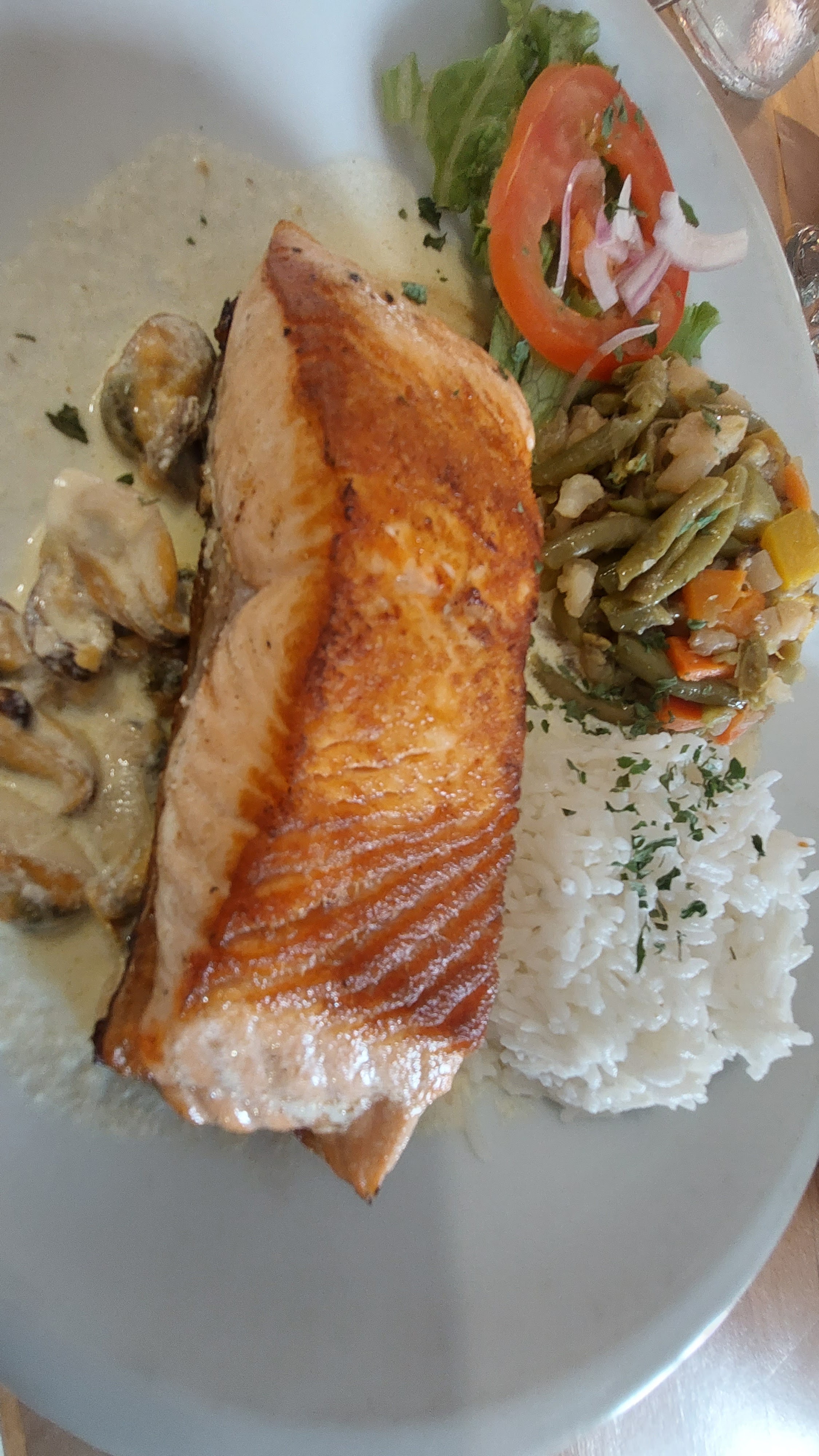 Le personnel est sympathique. Les assiettes étaient copieuses. Un peu bruyant car il y a avait un groupe dans la salle d' à côté. Nous avons également reçu la visite à table de certains membres de ce groupe complètement alcoolisés avec des propos confus...ça c'est moins top.