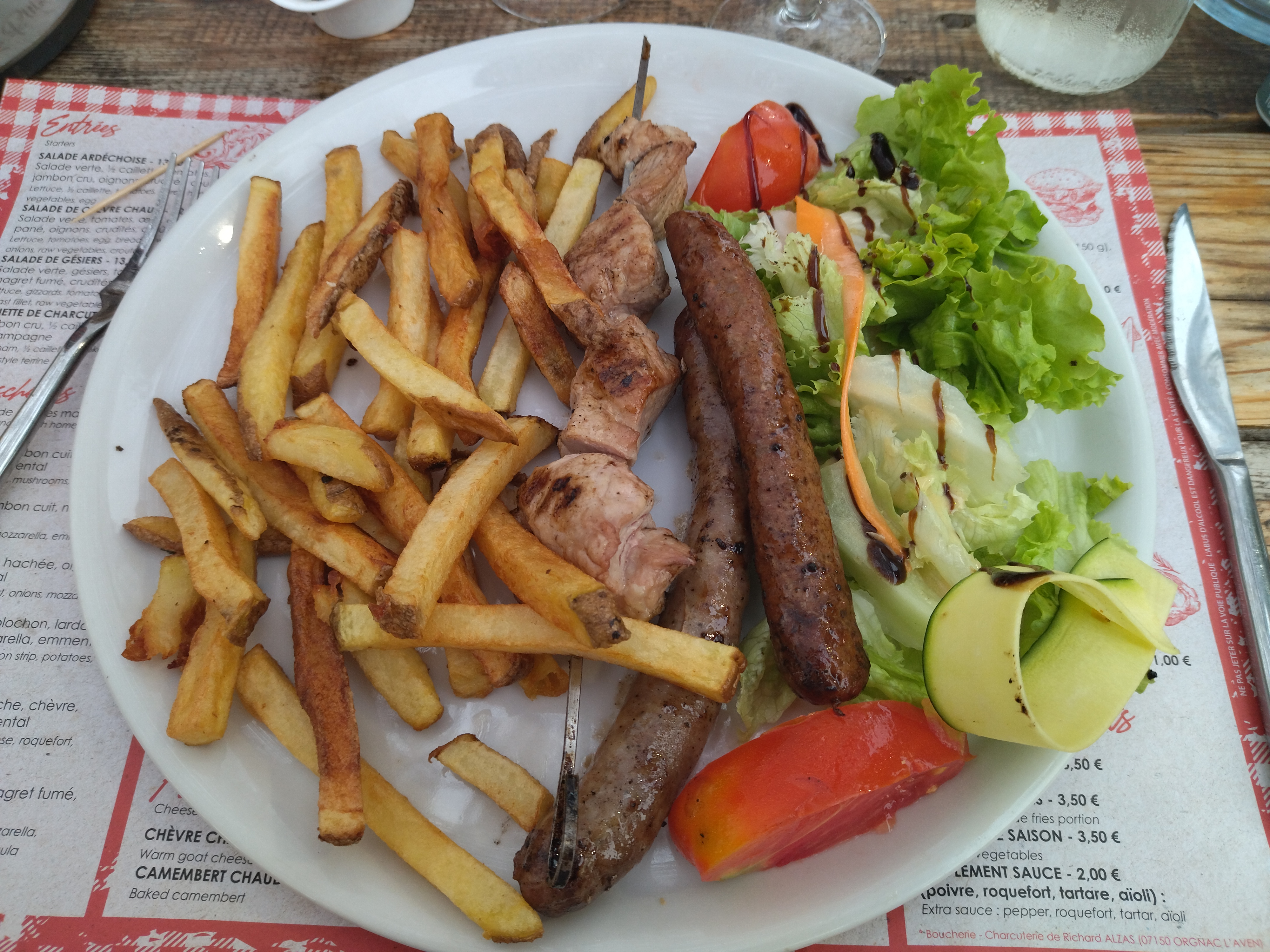 Ça va mais un peu cher pour assister de brochette avec une brochette une saucissette et une merguez certe a côté il y a les frites et la salades mais bon. Mais en tout cas la brochette était très très bonnes