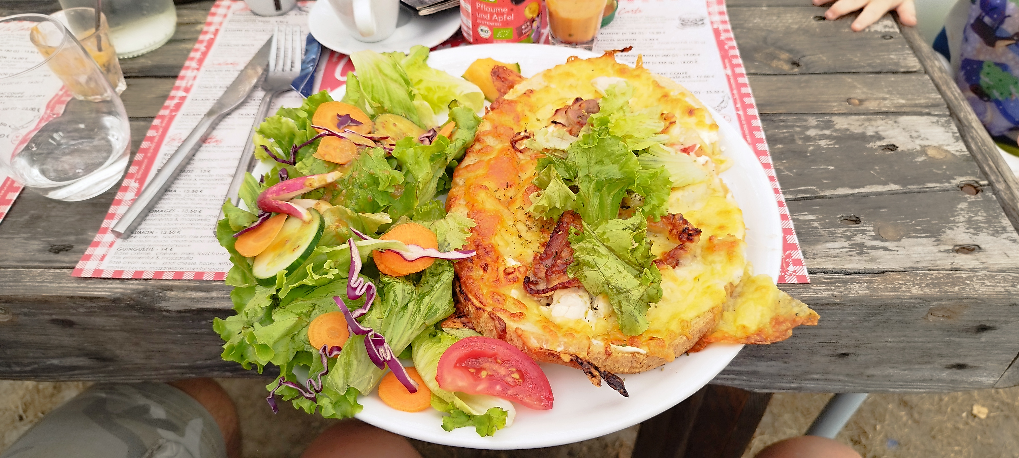 Accueil sympa et cuisine généreuse . Nous avions pris des salades 🥗 et un repas enfant bien servi. Peut être que si les poubelles situées à l entrée du parking étaient dans un abri bois ce serait plus joli et accueillant...