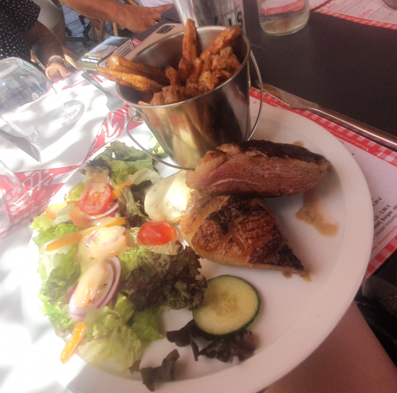 Service au top plat généreux petit bémol terrasse en bois pas fix à côté des escaliers donc tremblement sur la table et verre que tombe à cause de cela